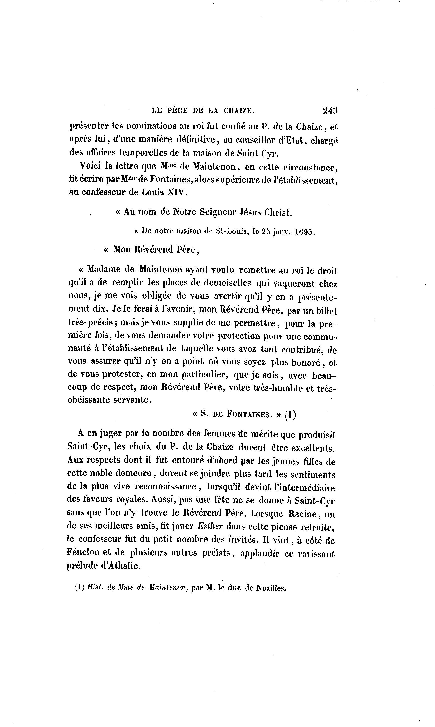 (1) Hist. de Mme de Maintenon, par M. le duc de Noailles-