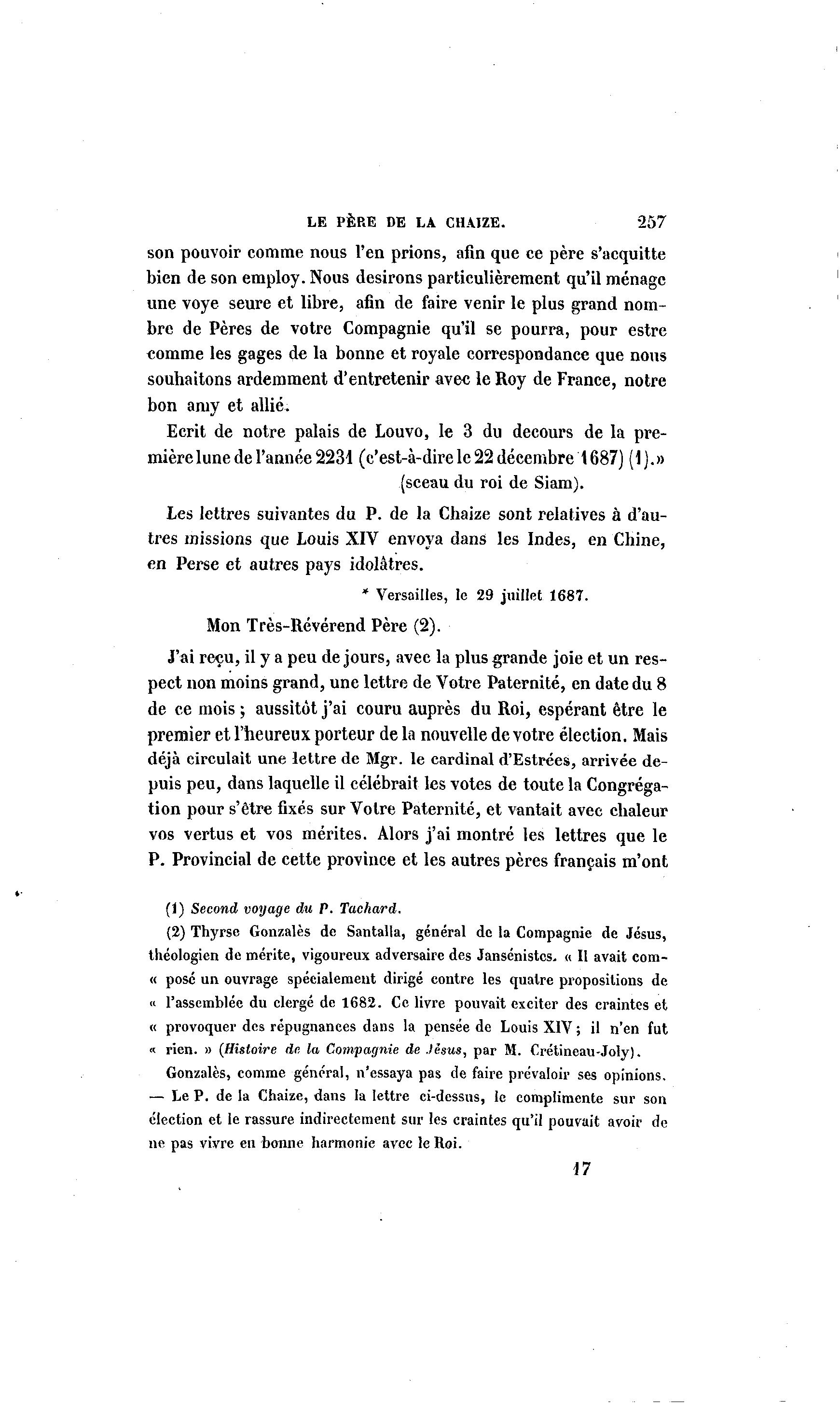 Les lettres suivantes du P. de la Chaize sont relatives à d'au-