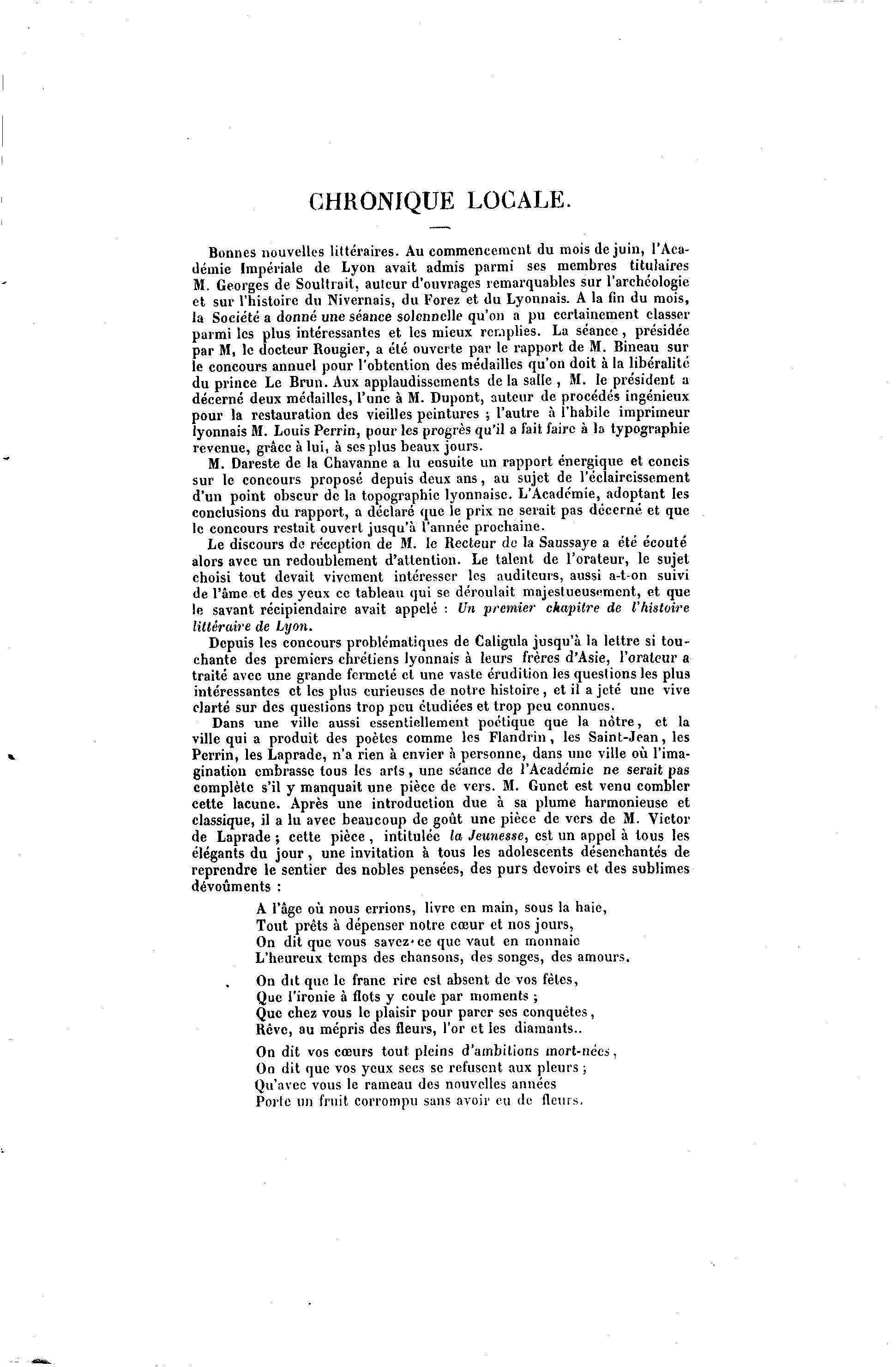 d'un point obscur de la topographie lyonnaise. L'Académie, adoptant les
