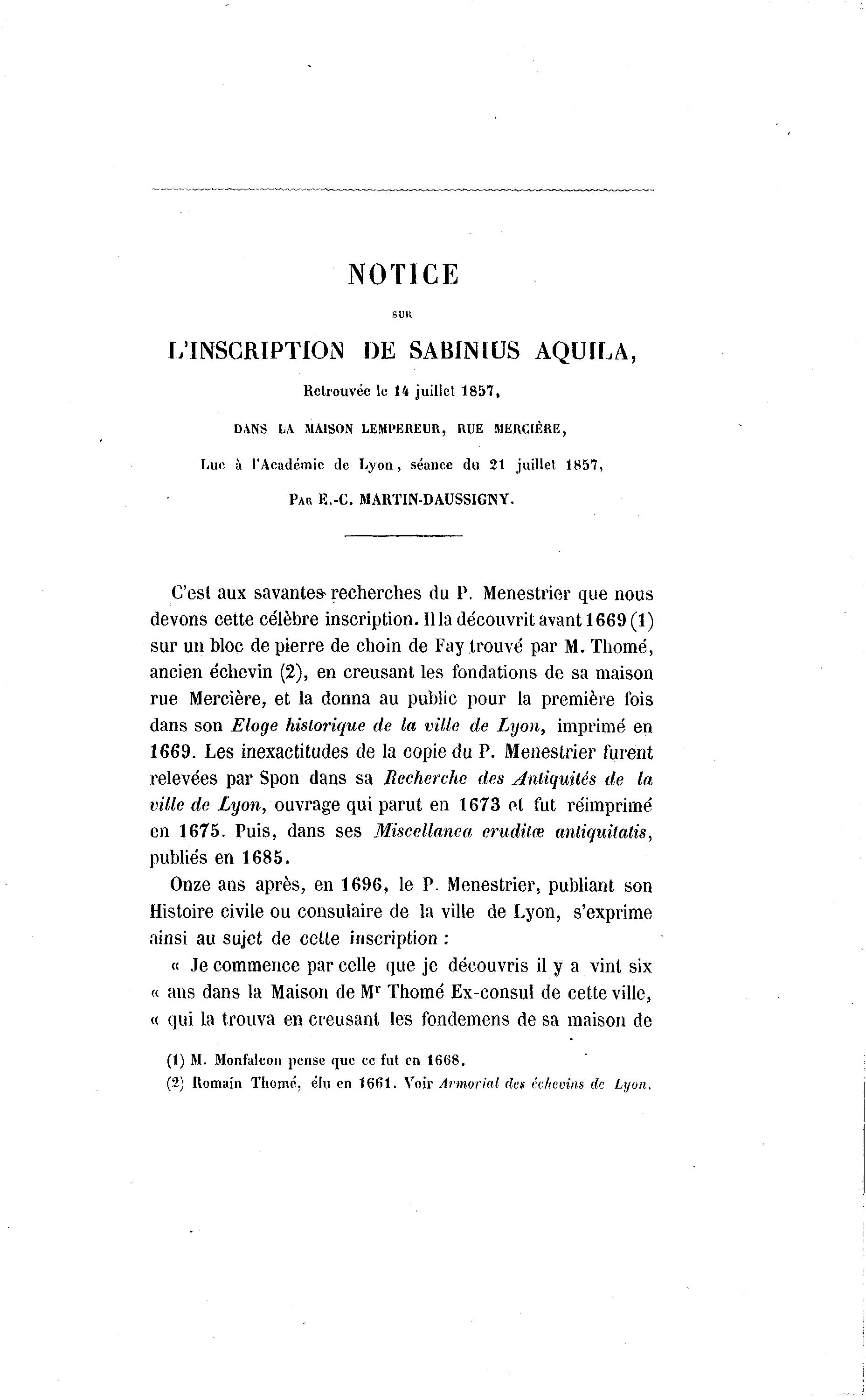 Luc à l'Académie de Lyon, séance du 2t juillet 1857,