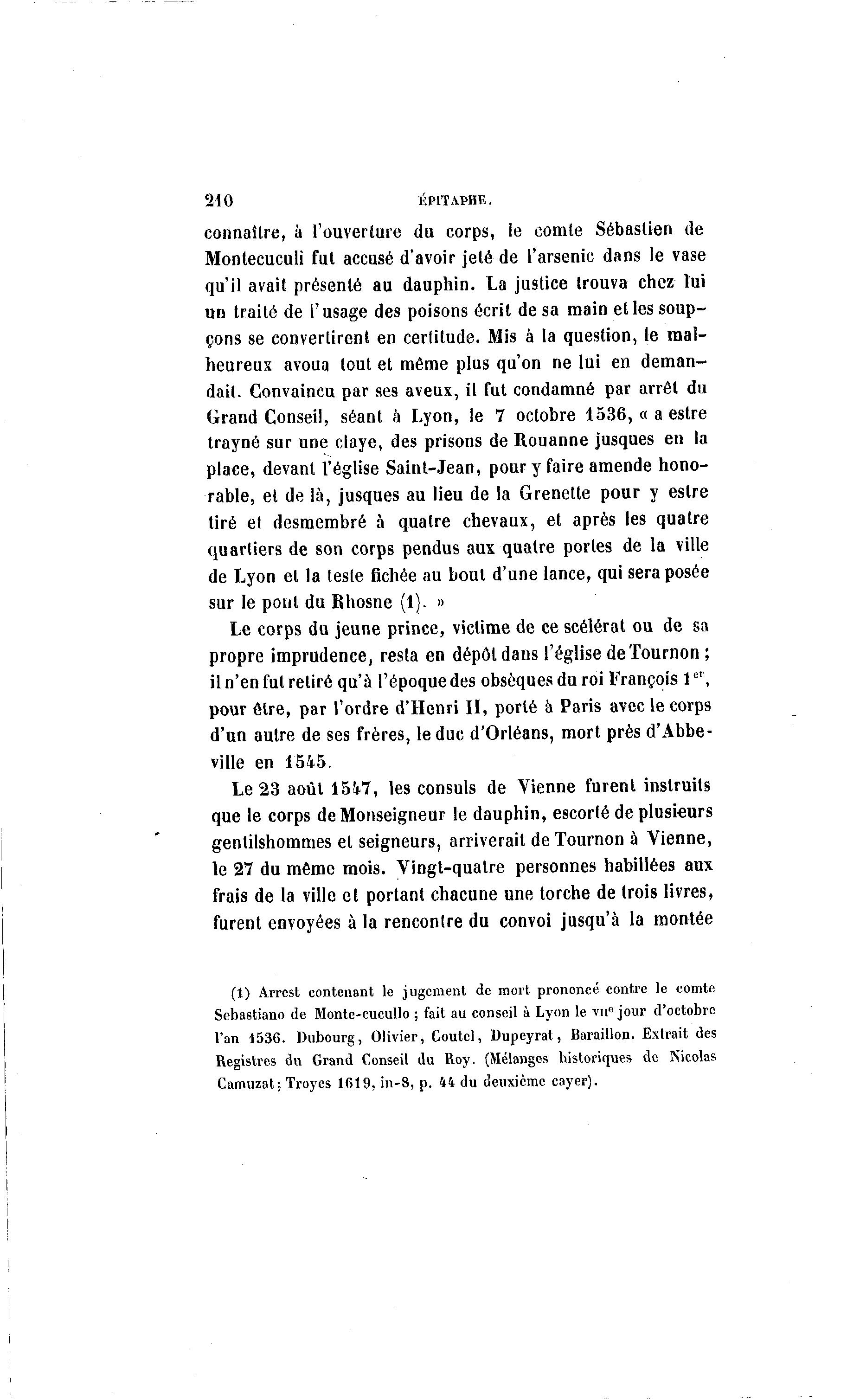 il n'en fut retiré qu'à l'époque des obsèques du roi François 1 "',