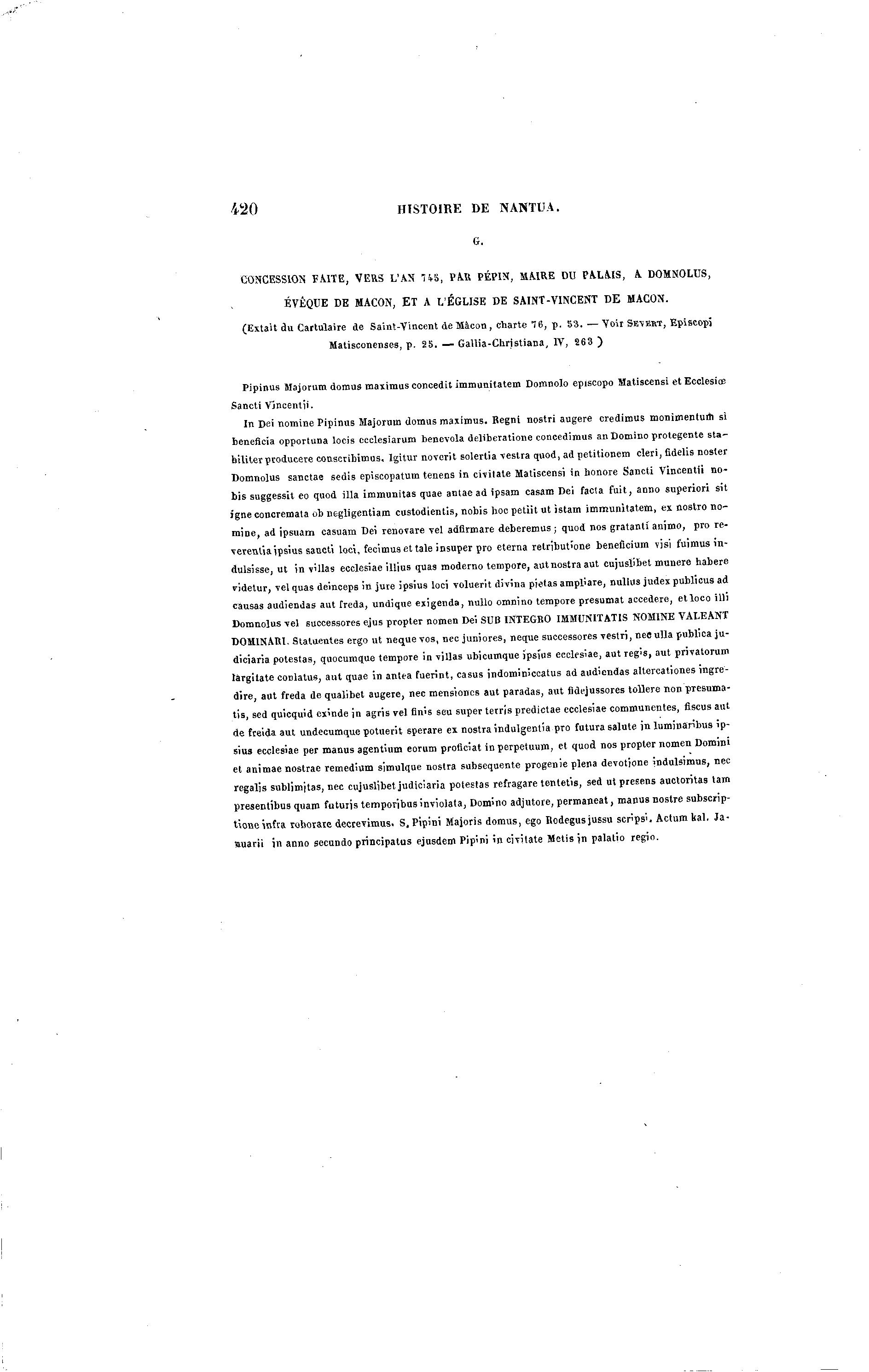 (Extait du Cartulaire de Saint-Vincent de Mà con, charte 76, p. 53. — Voir SE\EKT, Episcopï