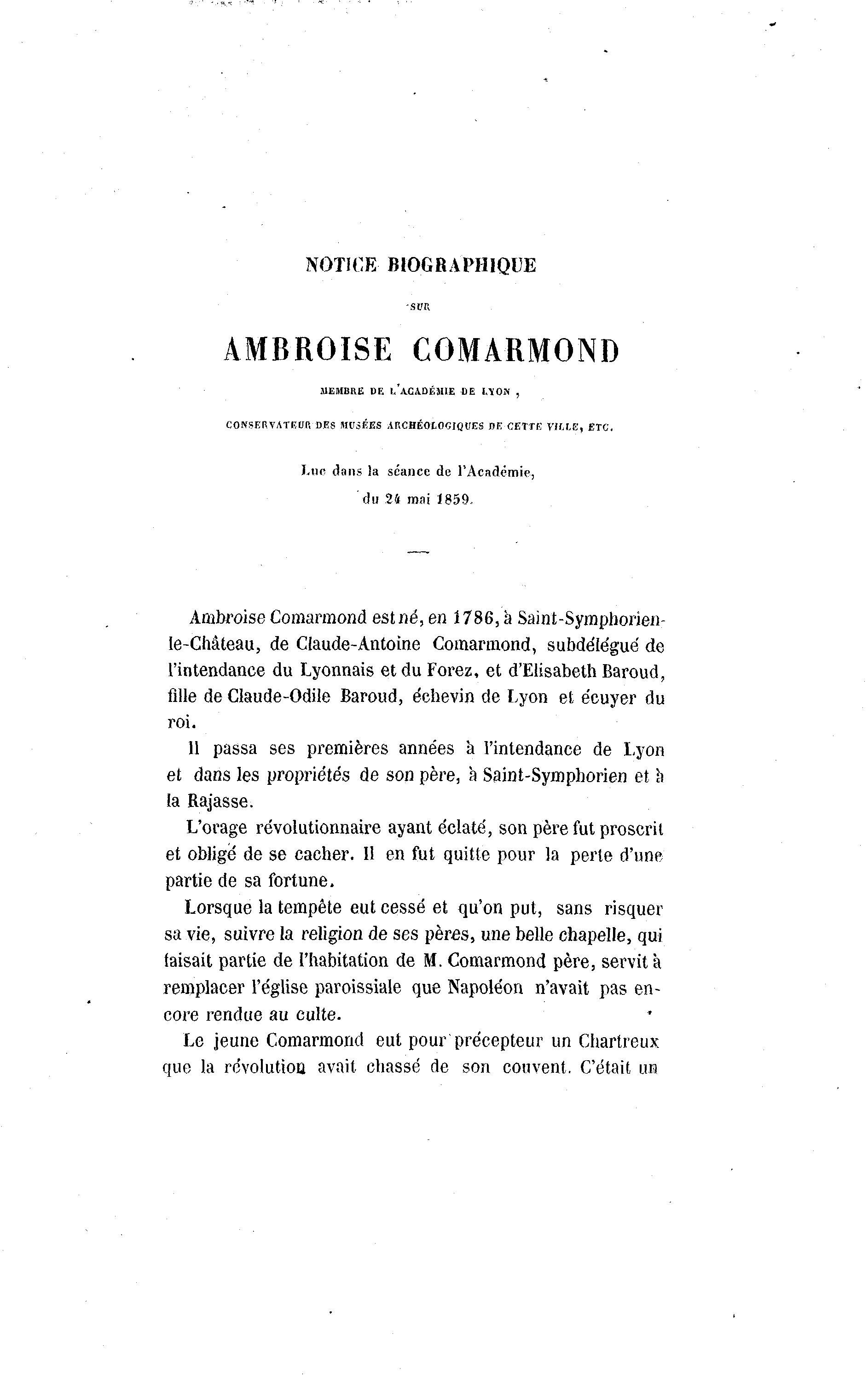 Ambroise Comarmond est né, en 1786, à Saint-Symphorien-