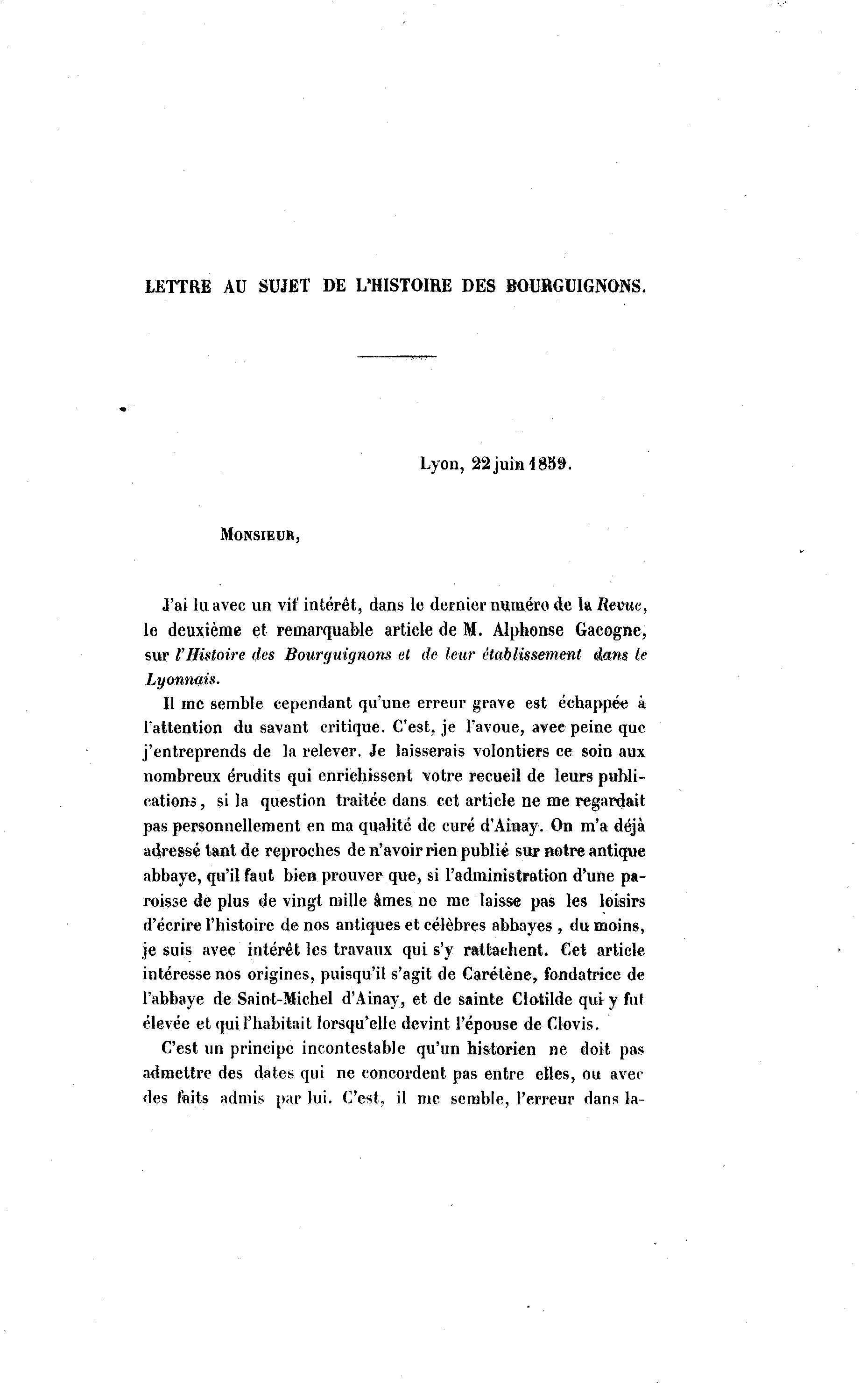 LETTRE AU SUJET DE L'HISTOIRE DES BOURGUIGNONS.