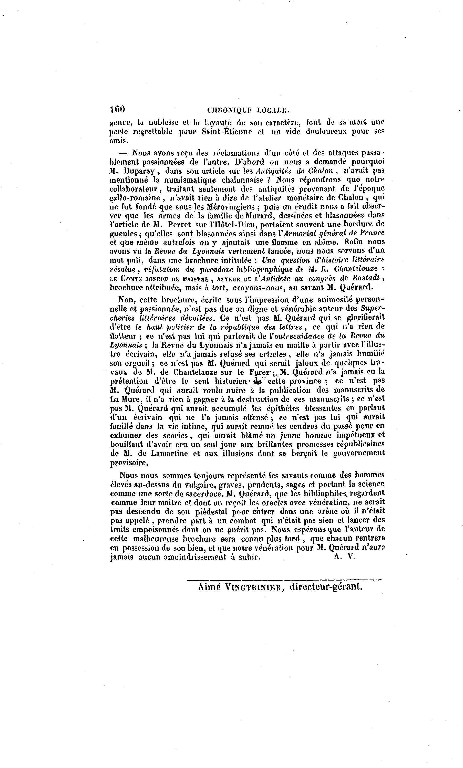 Aimé VINGTRINIER, directeur-gérant.