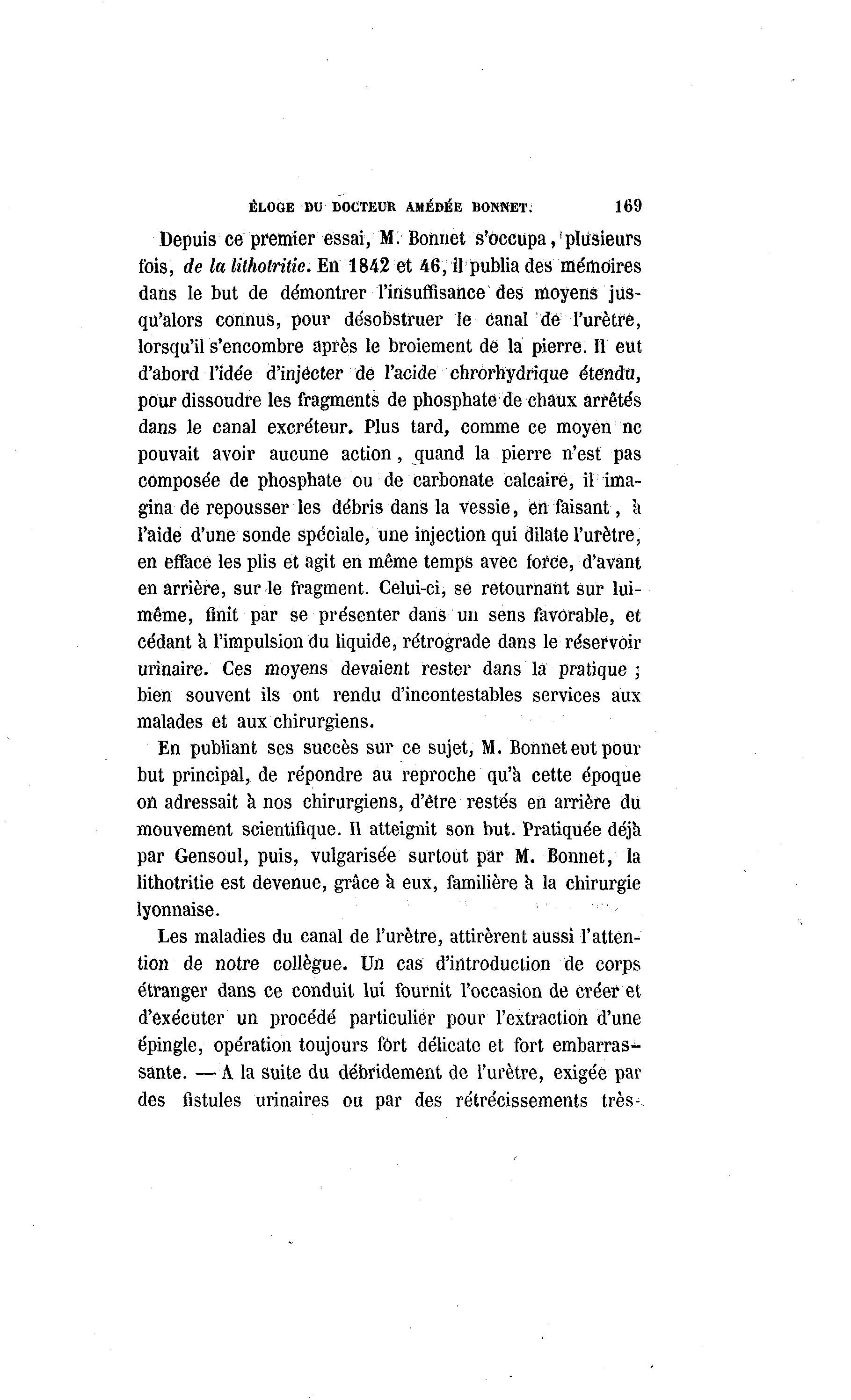 ÉLOGE DU DOCTEUR AMÉDÉE BONNET; 169