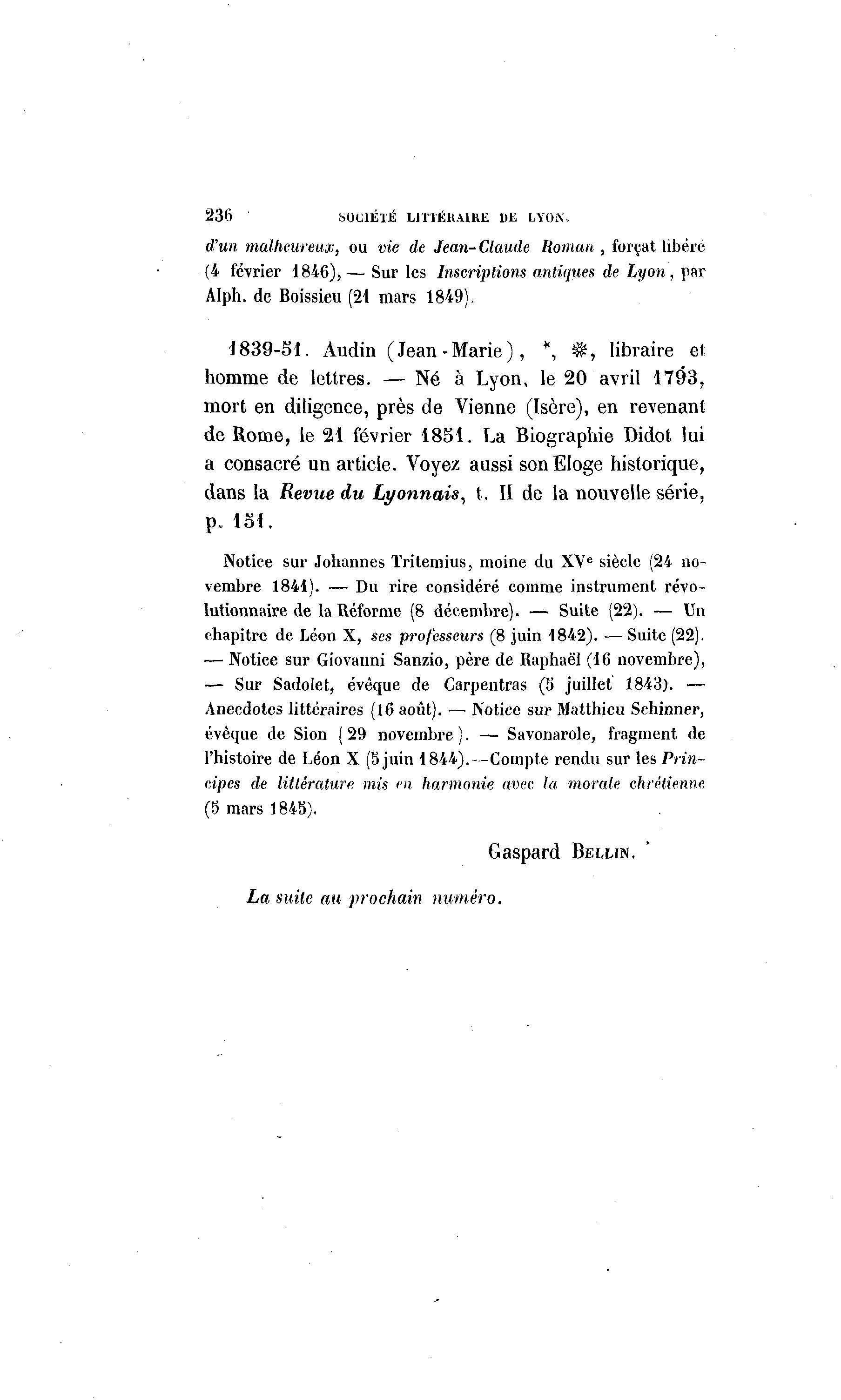 dans la Revue du Lyonnais, t. II de la nouvelle série,