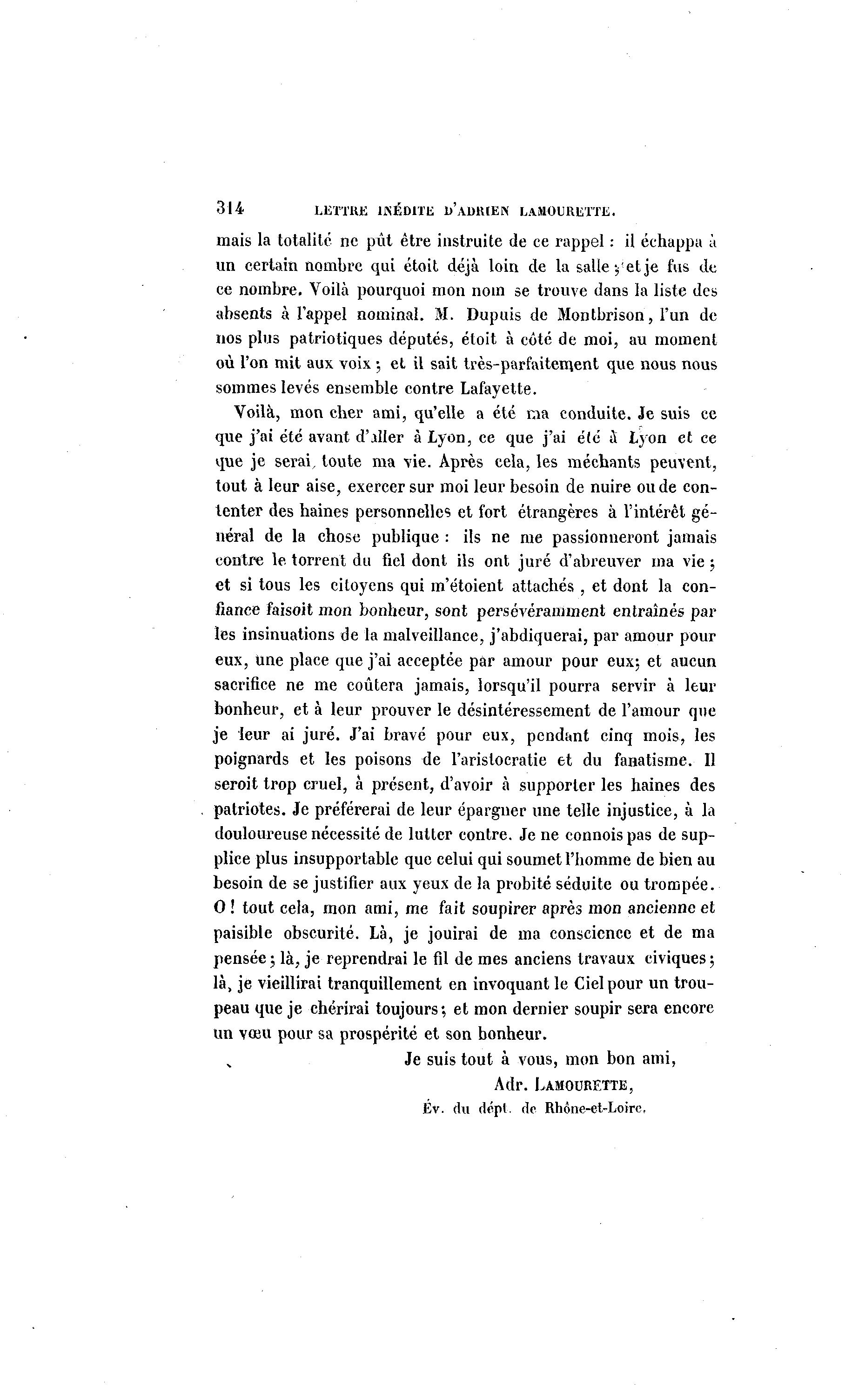 314 LETTRE INÉDITE 1)'ADRIEN LAMOURETTE.