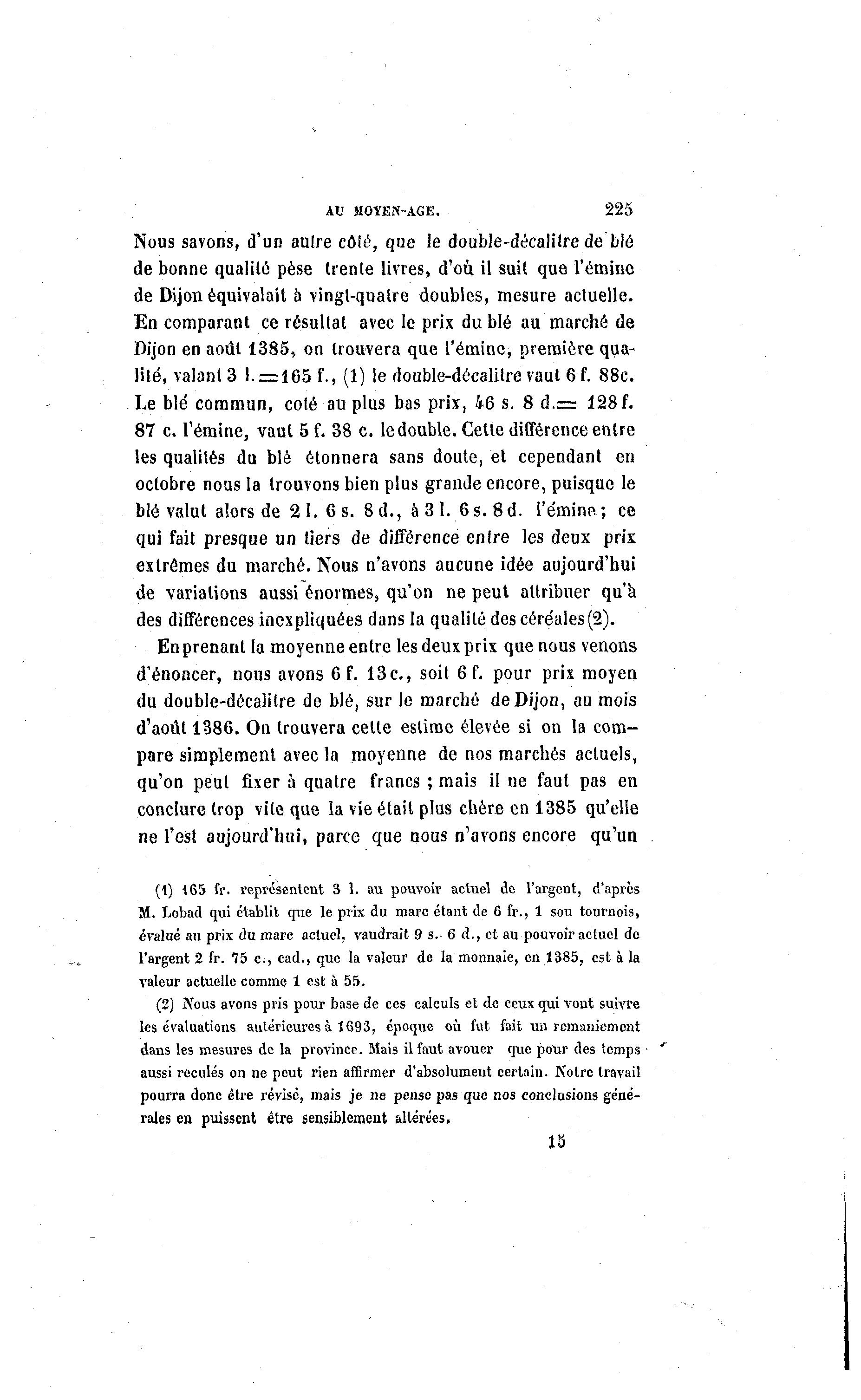 Dijon en août 1385, on trouvera que l'émine, première qua-
