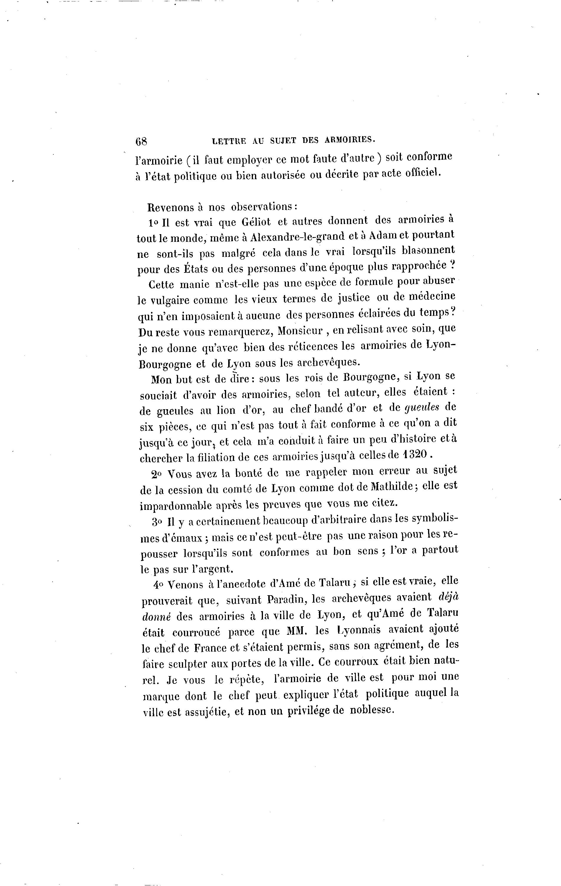 68 LETTUE AU SUJET DES ARMOIRIES.