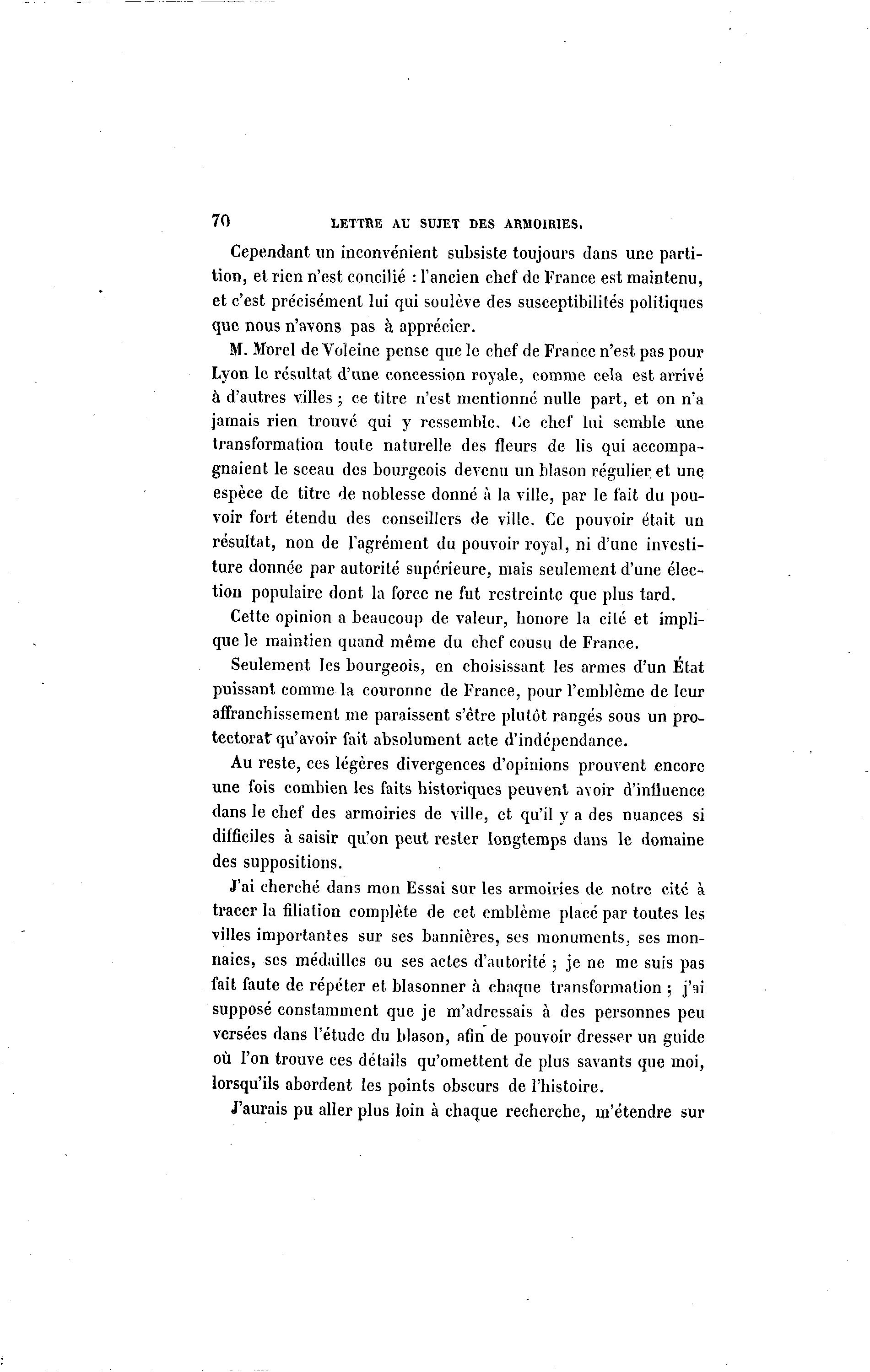 70 LETTRE AU SUJET DES ARMOIRIES.