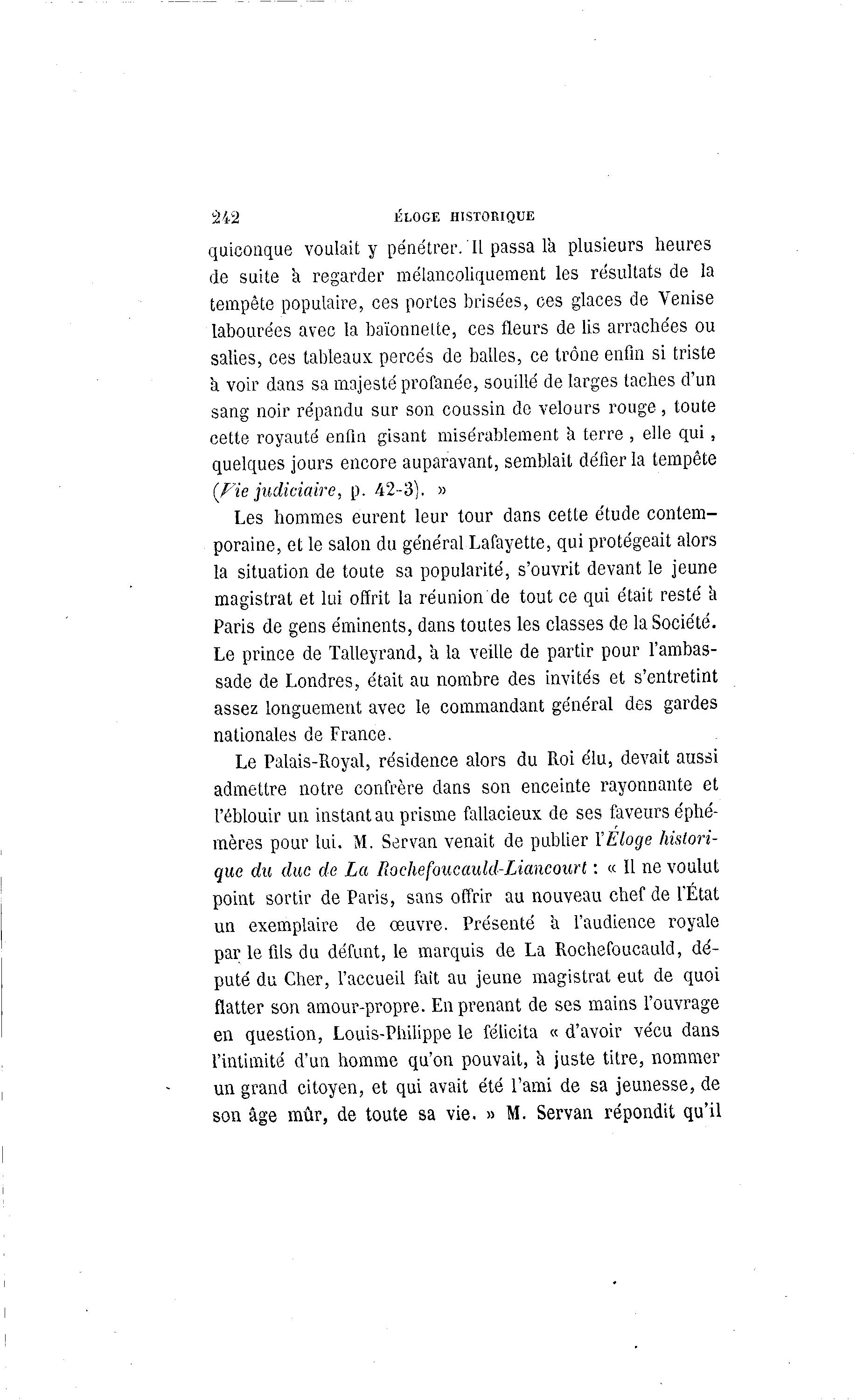 en question, Louis-Philippe le félicita « d'avoir vécu dans