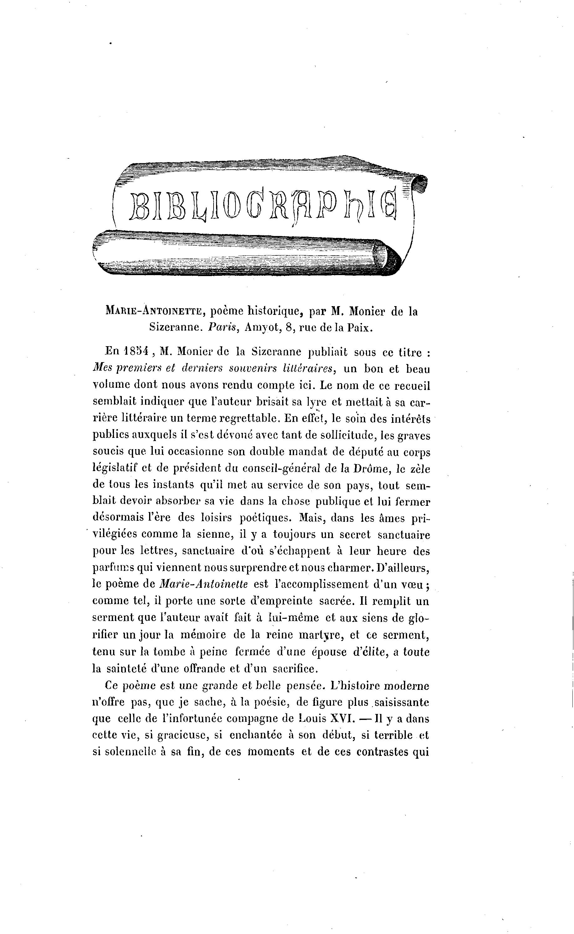 MARIE-ANTOINETTE, poème historique, par M. Monier de la