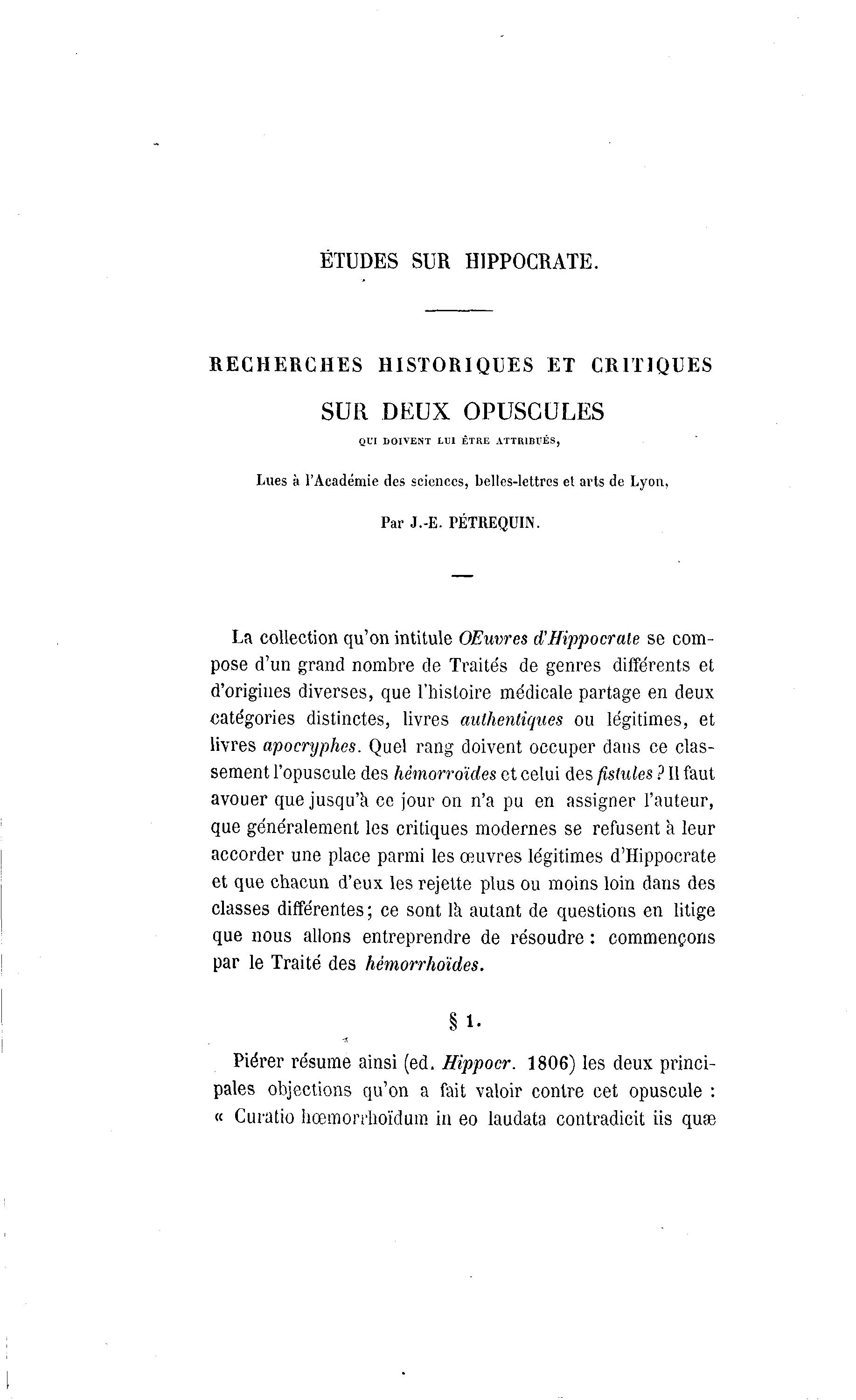 accorder une place parmi les œuvres légitimes d'Hippocrate