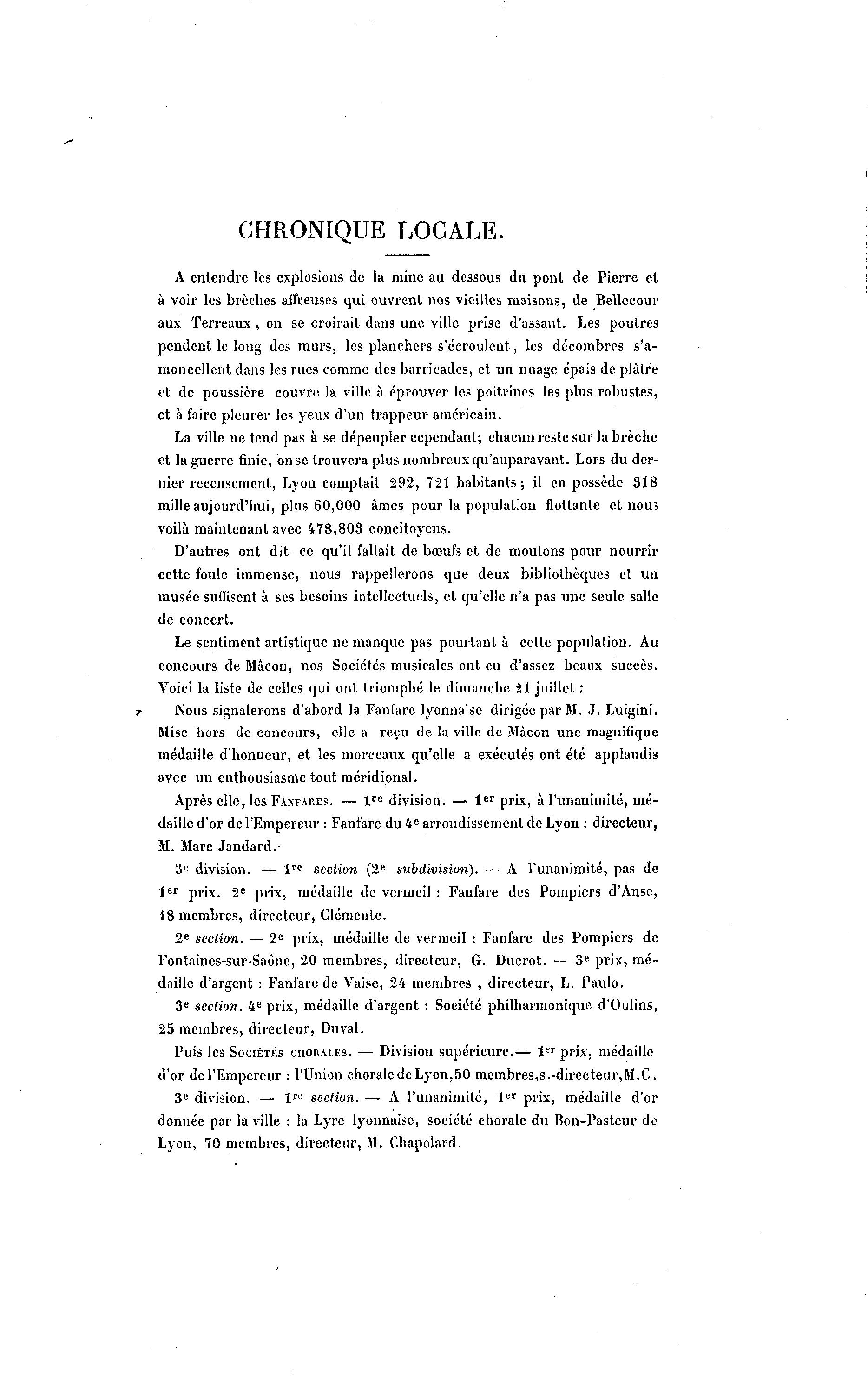 > Nous signalerons d'abord la Fanfare lyonnaise dirigée par M. J. Luigini.