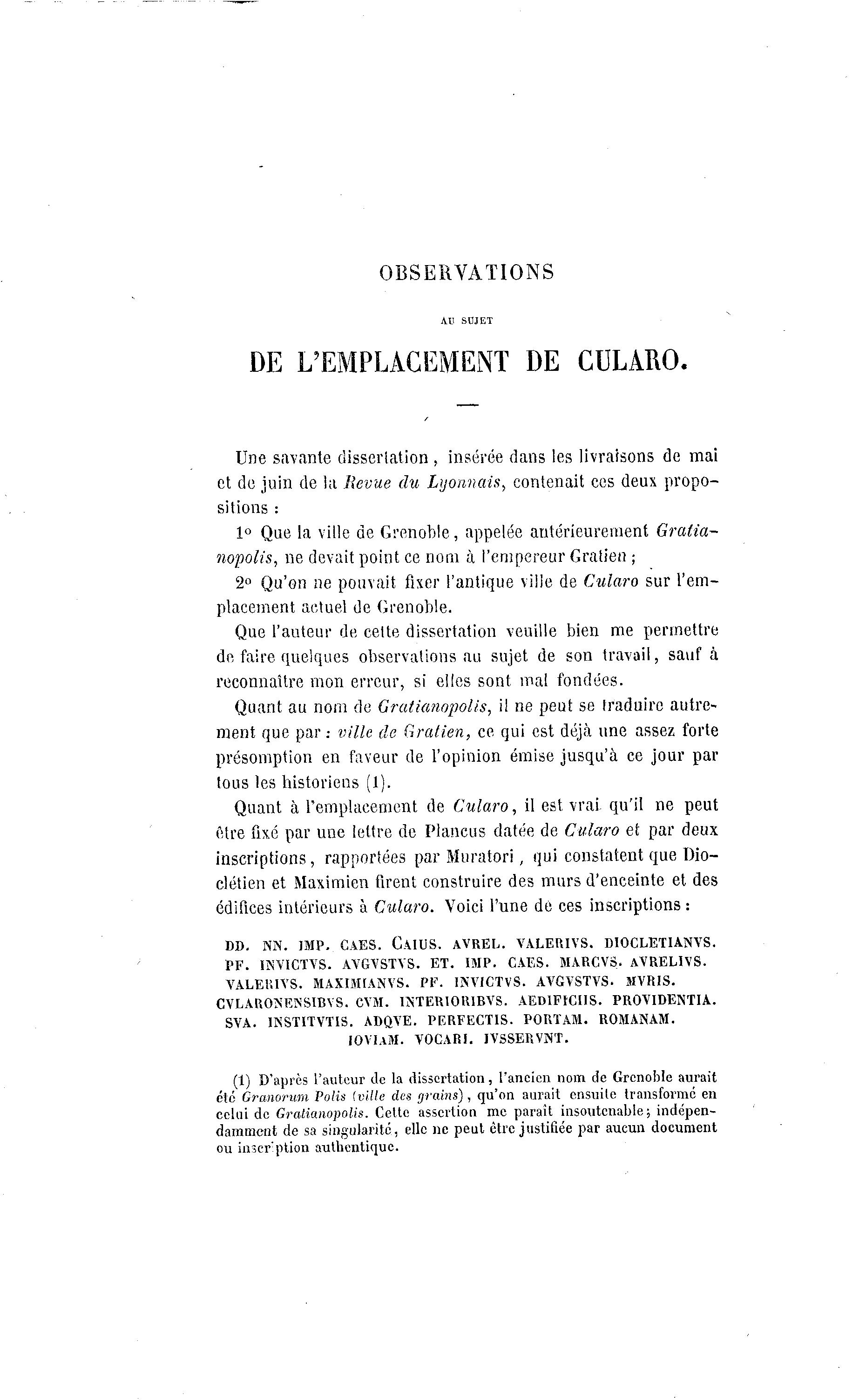 (1) D'après l'auteur de la dissertation, l'ancien nom de Grenoble aurait