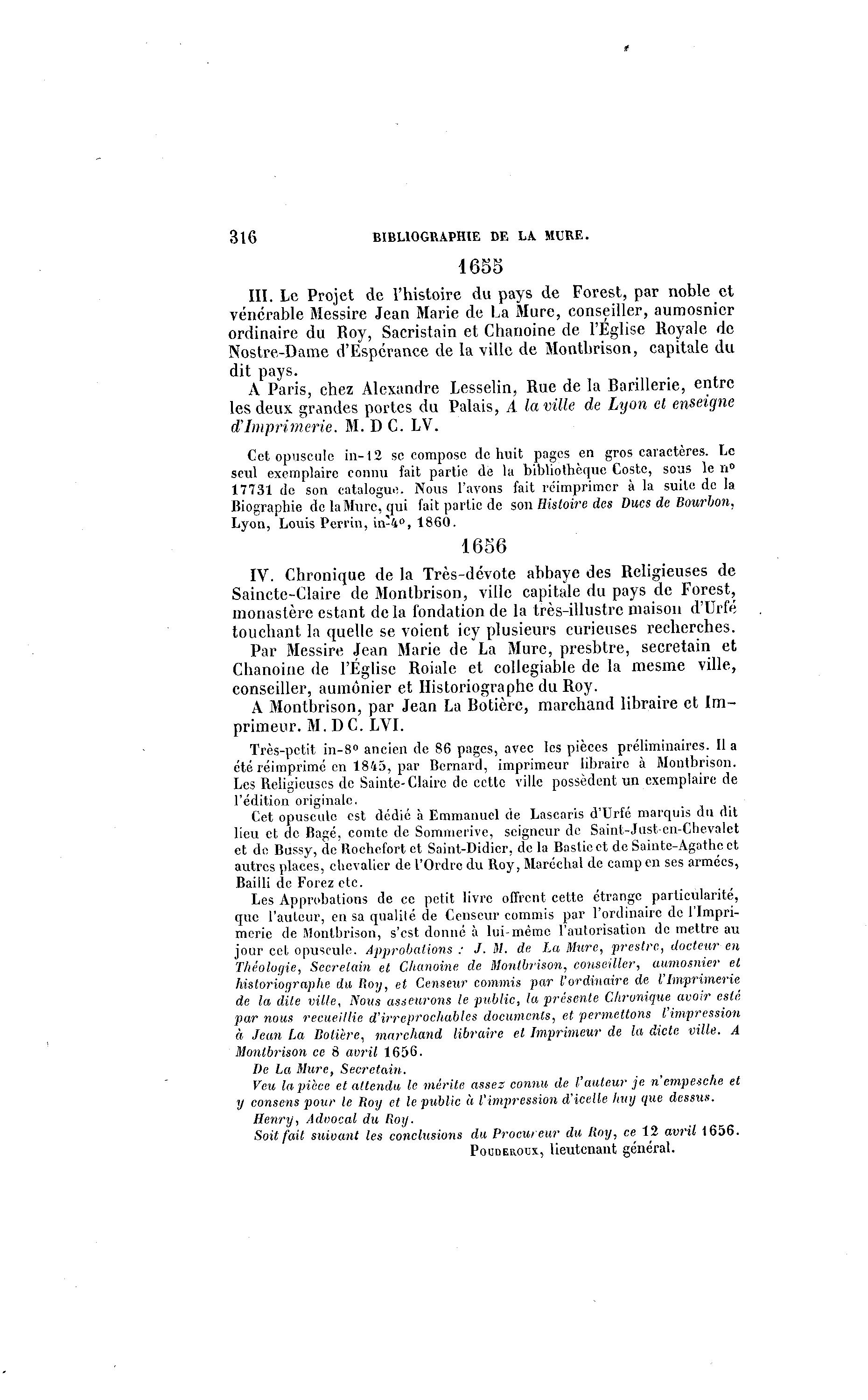 Biographie de la Mure, qui fait partie de son Histoire des Ducs de Bourbon,