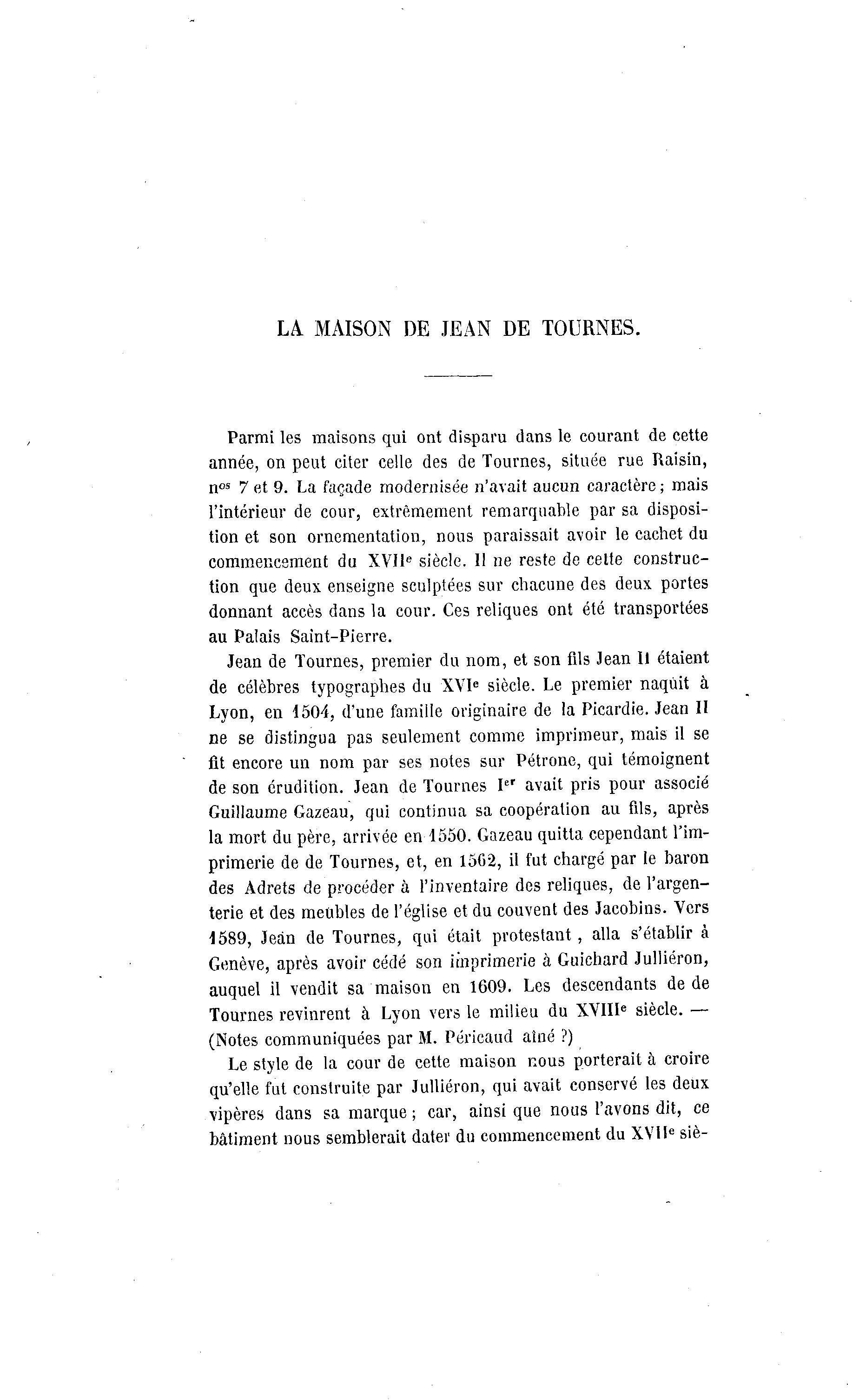 année, on peut citer celle des de Tournes, située rue Raisin,