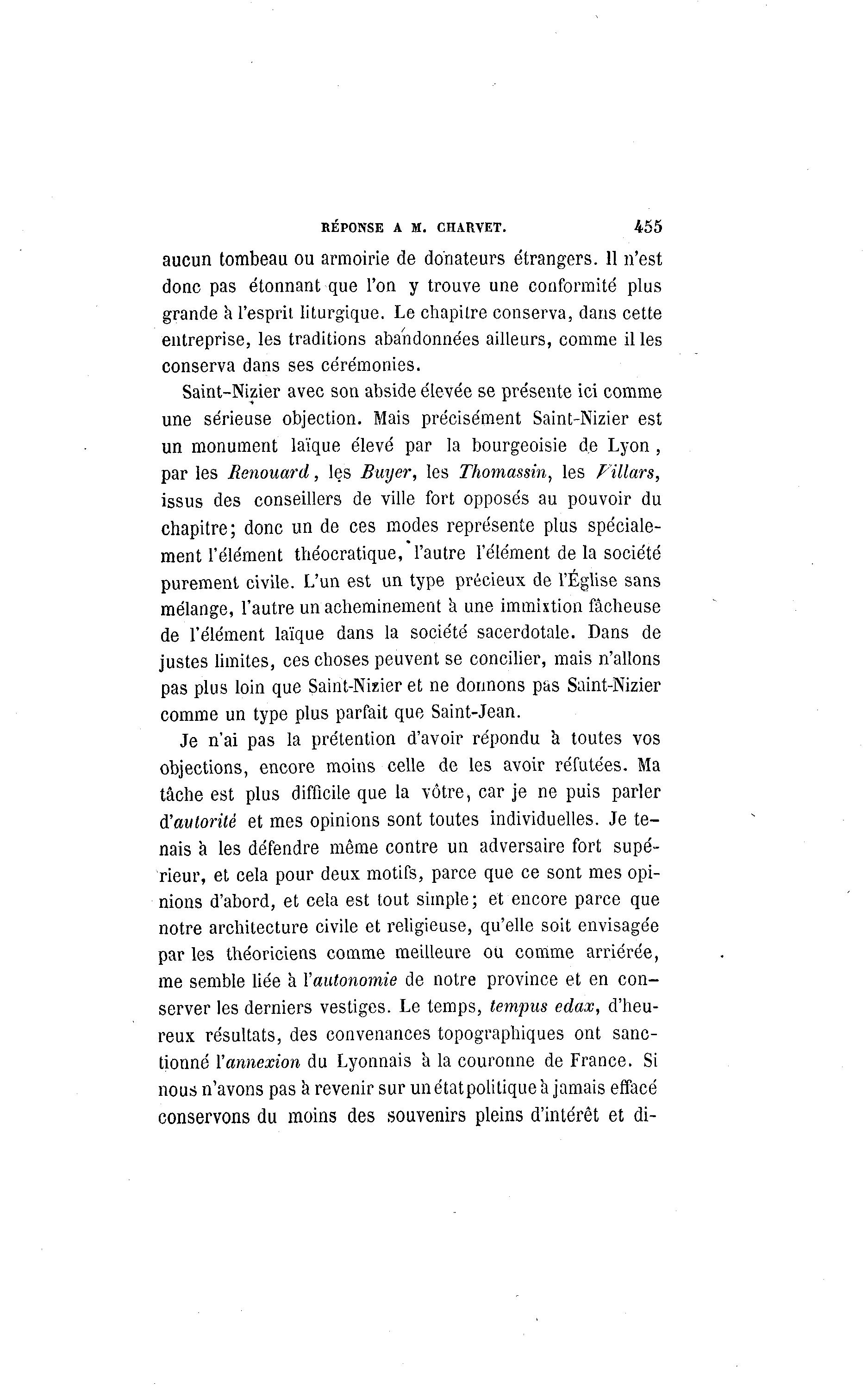 RÉPONSE A M. CHARVET. 455