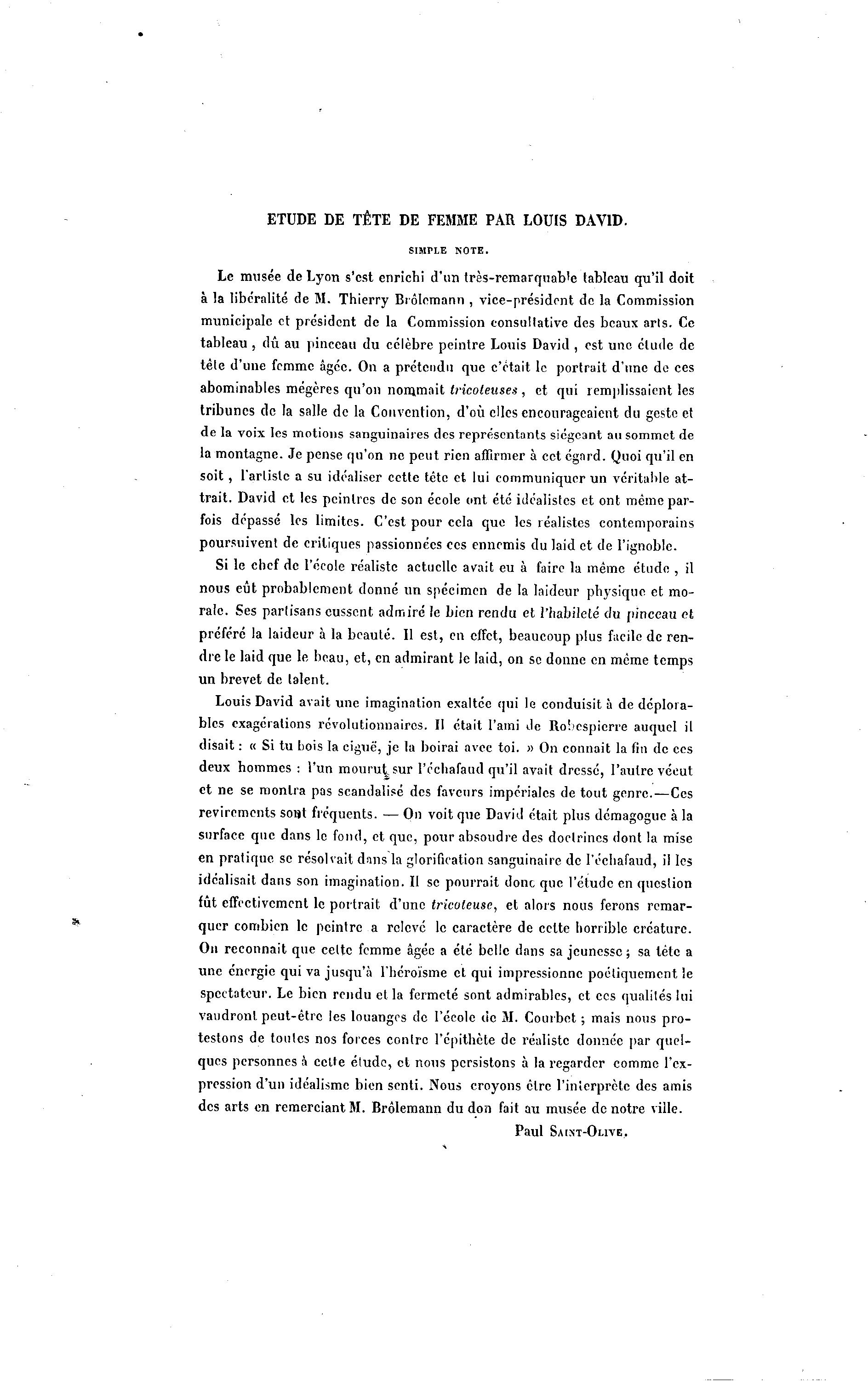 Louis David avait une imagination exaltée qui le conduisit à de déplora-