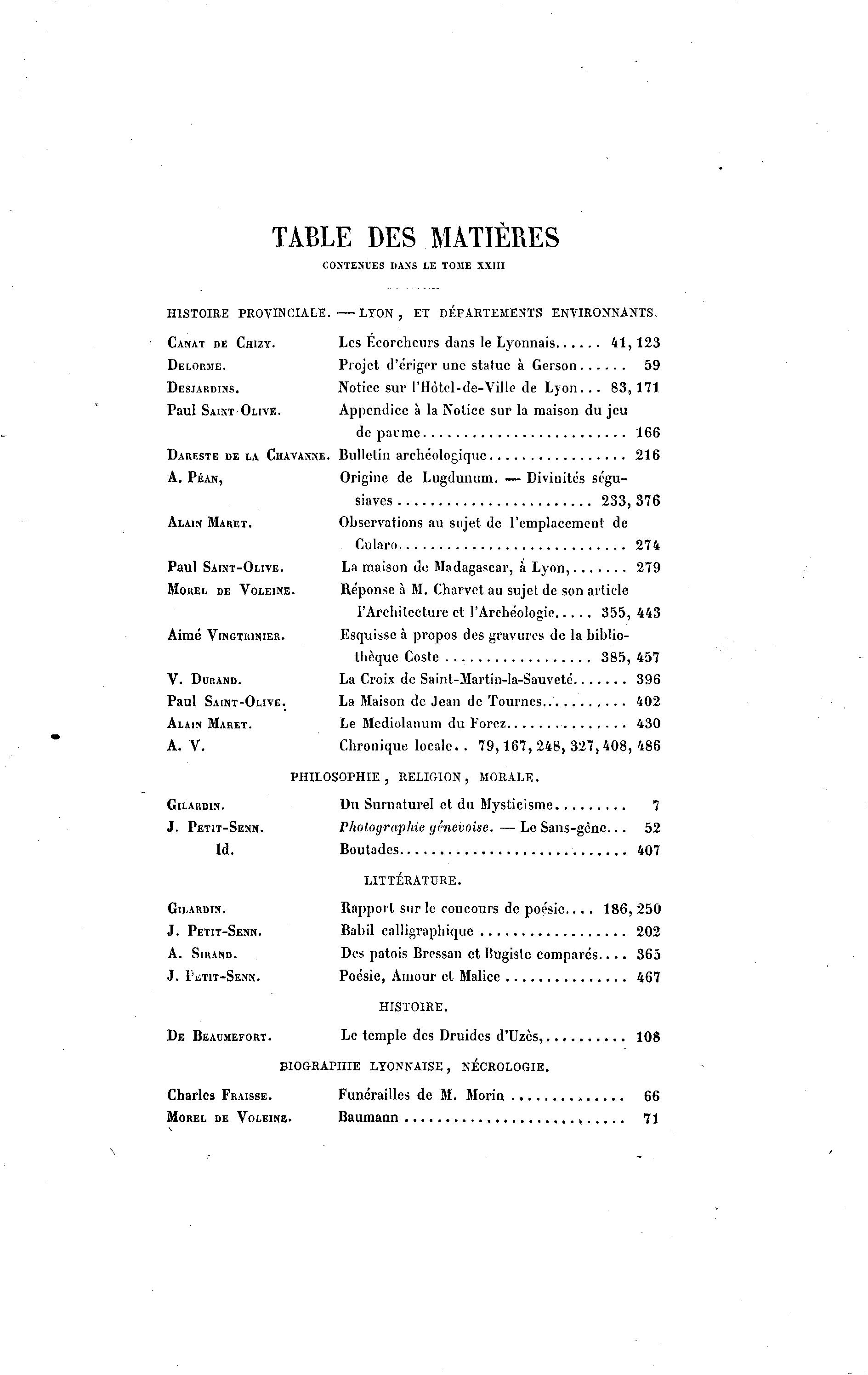 CONTENUES DANS LE TOME XXIII