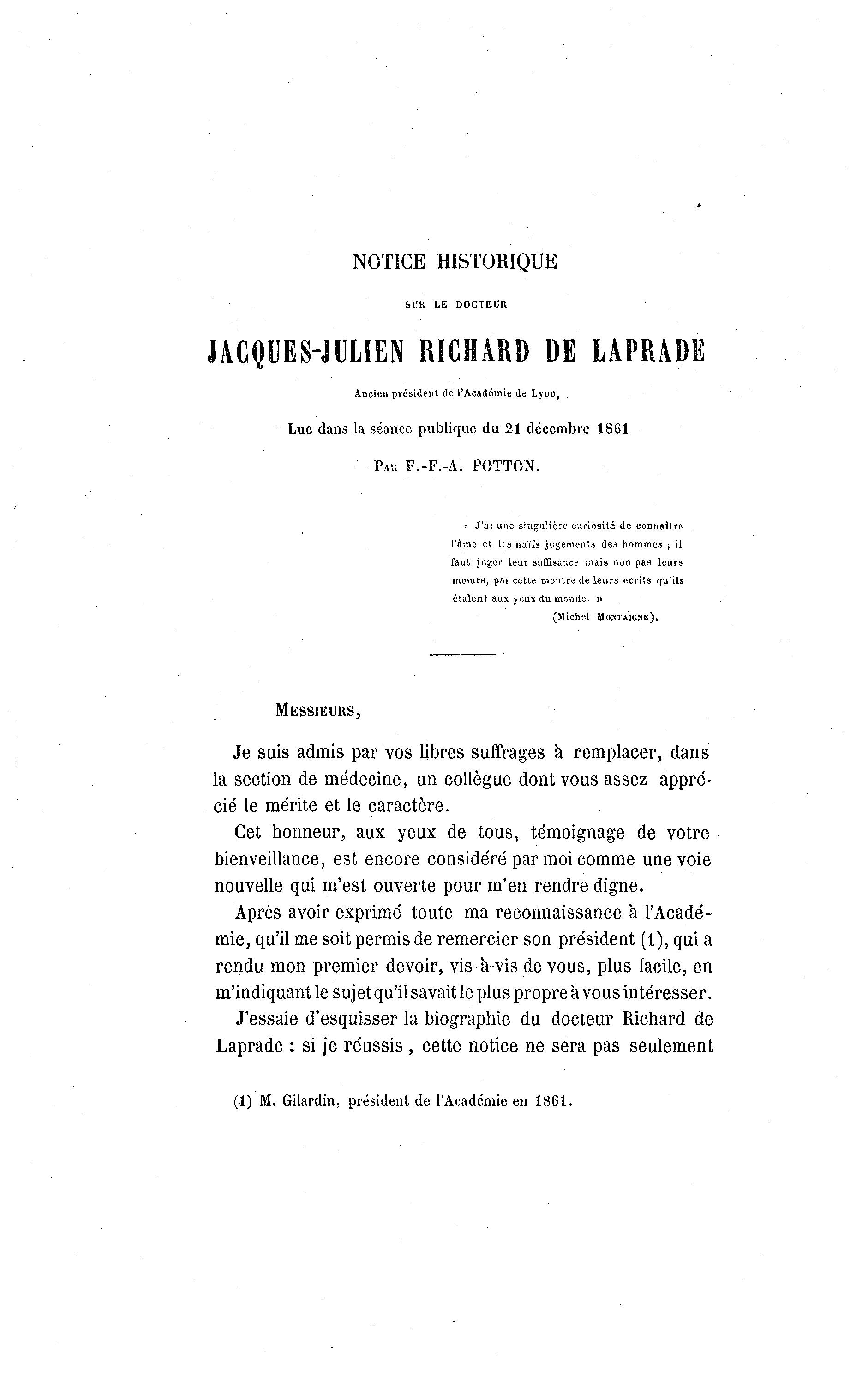 Laprade : si je réussis , cette notice ne sera pas seulement