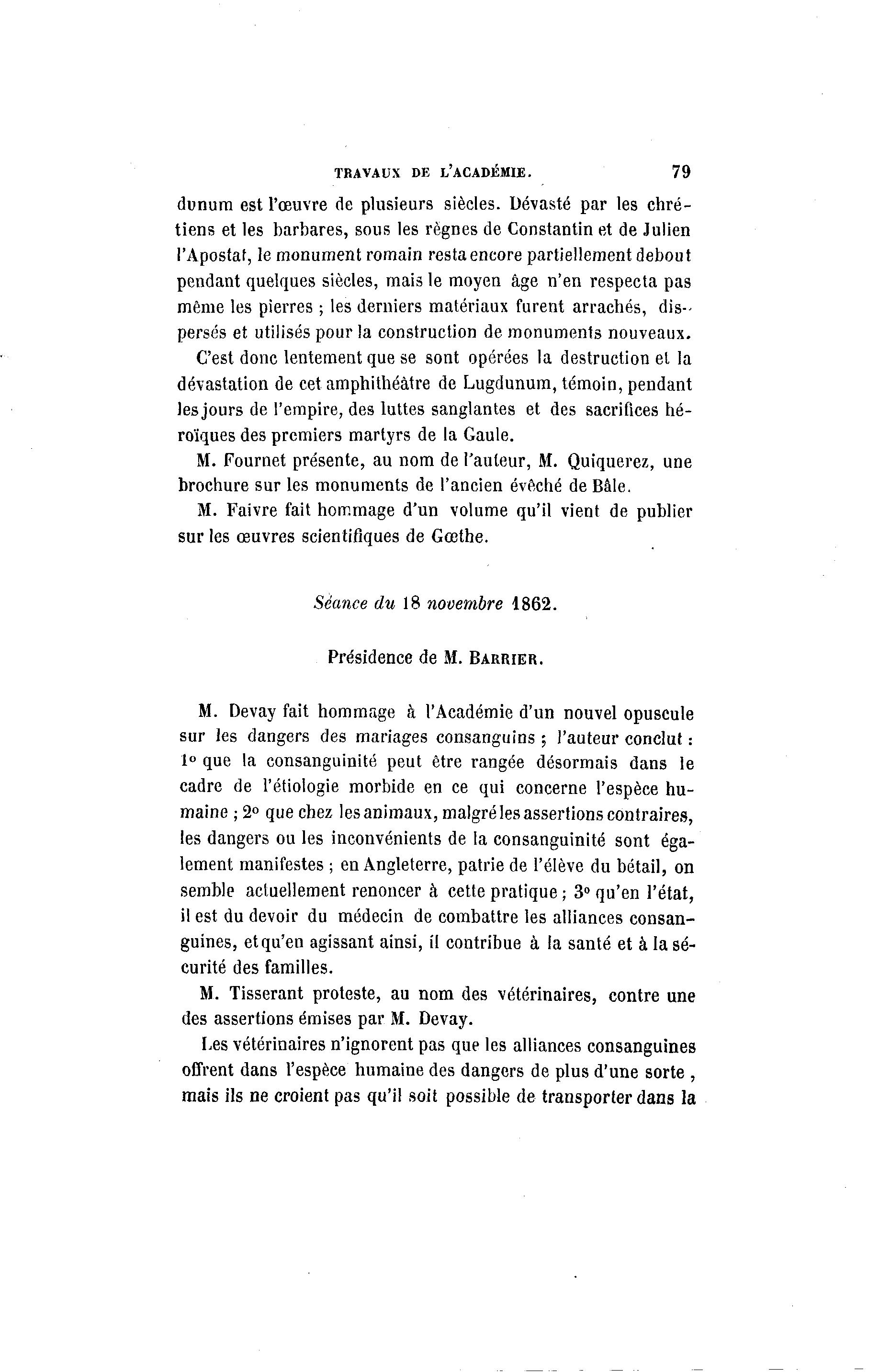 M. Devay fait hommage à l'Académie d'un nouvel opuscule