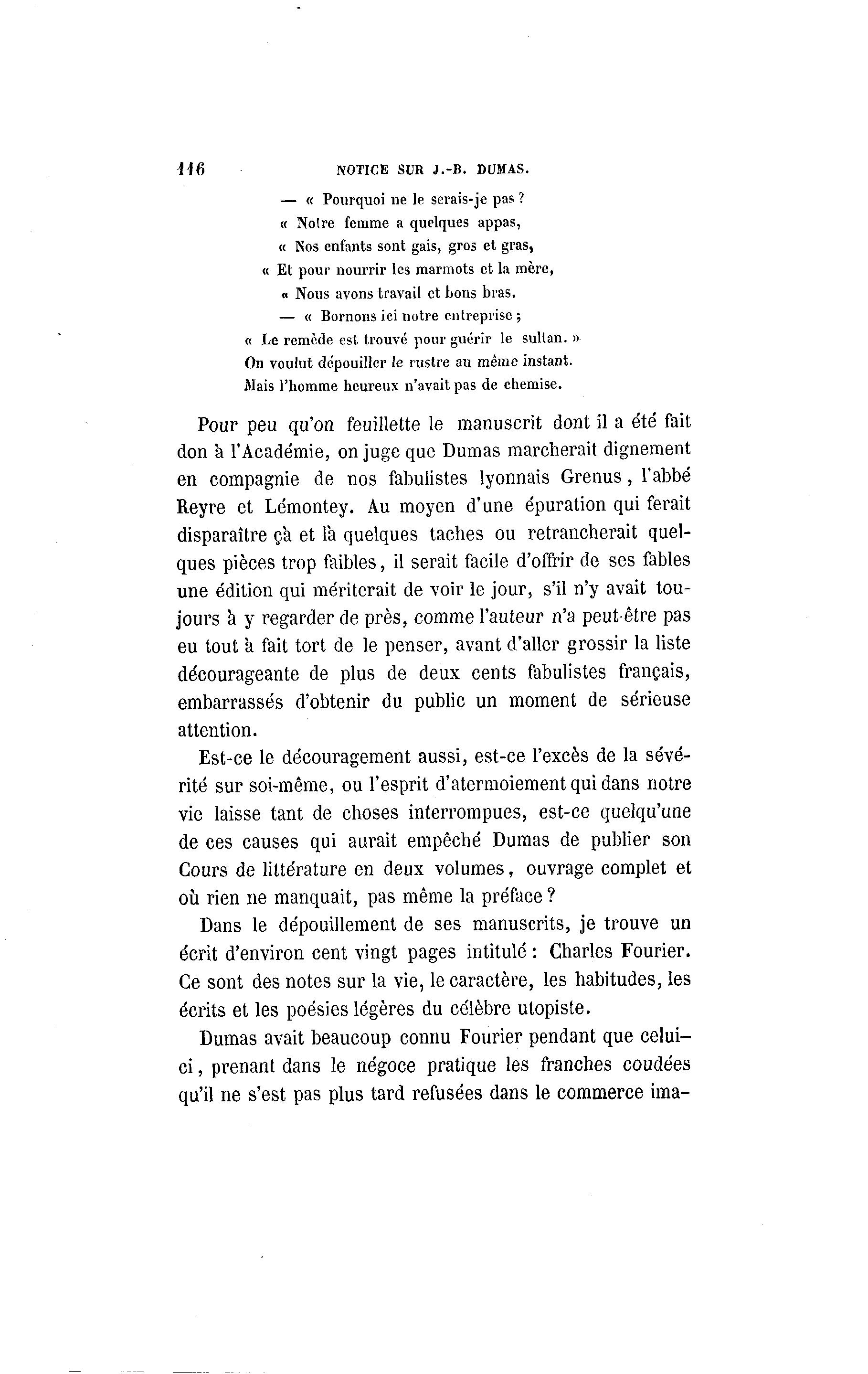 Dumas avait beaucoup connu Fourier pendant que celui-