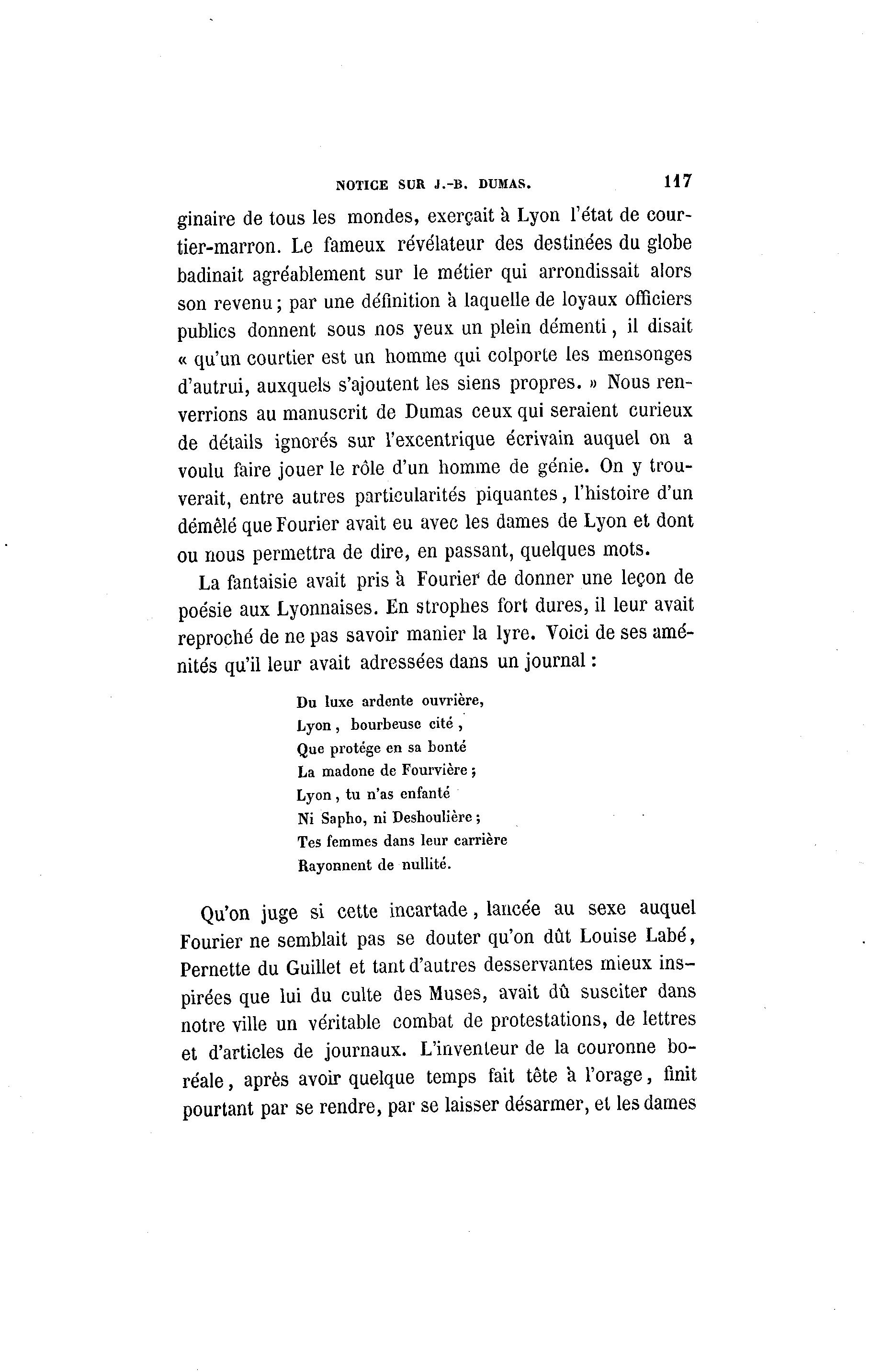 démêlé que Fourier avait eu avec les dames de Lyon et dont