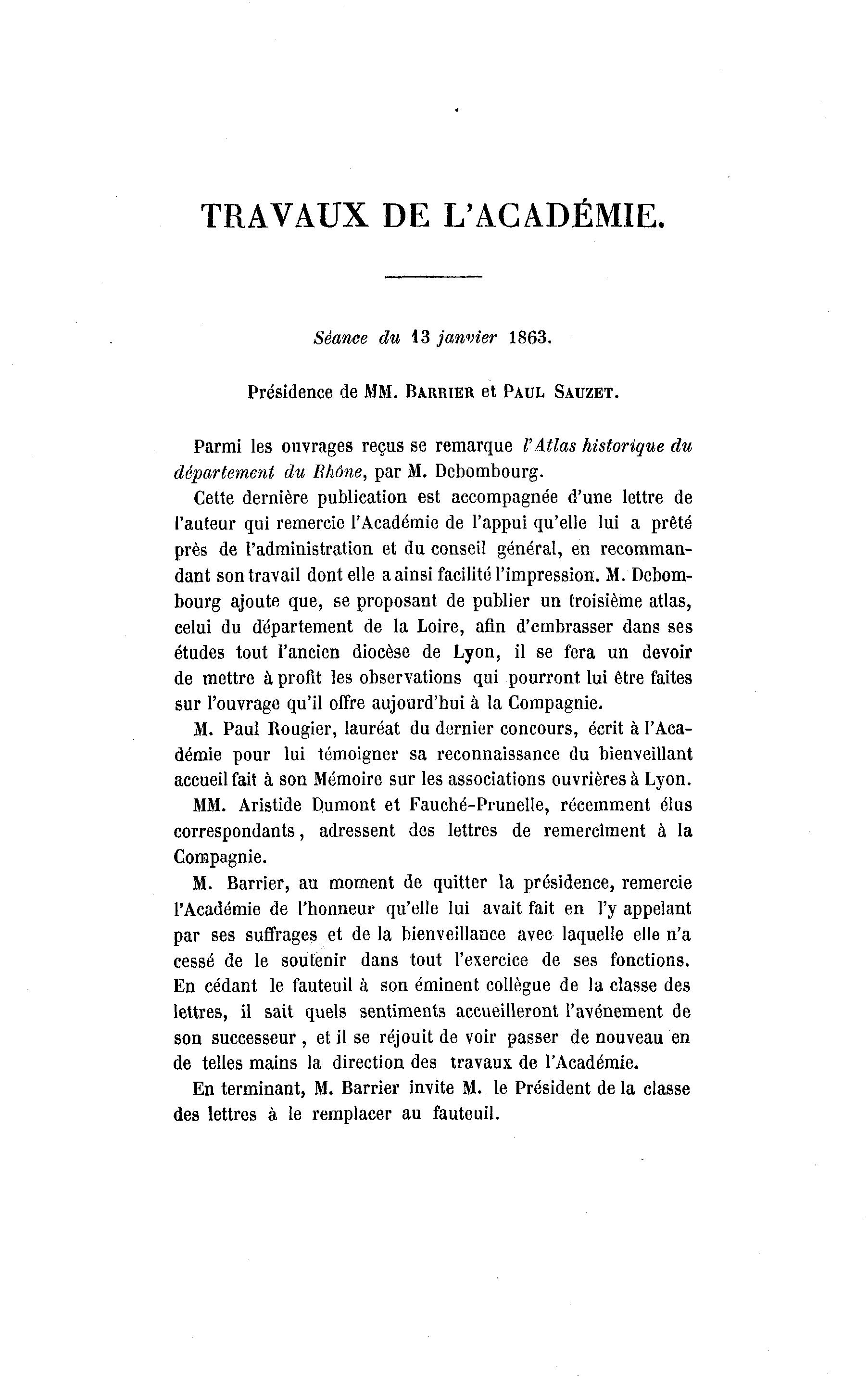 dant son travail dont elle a ainsi facilité l'impression. M. Debom-
