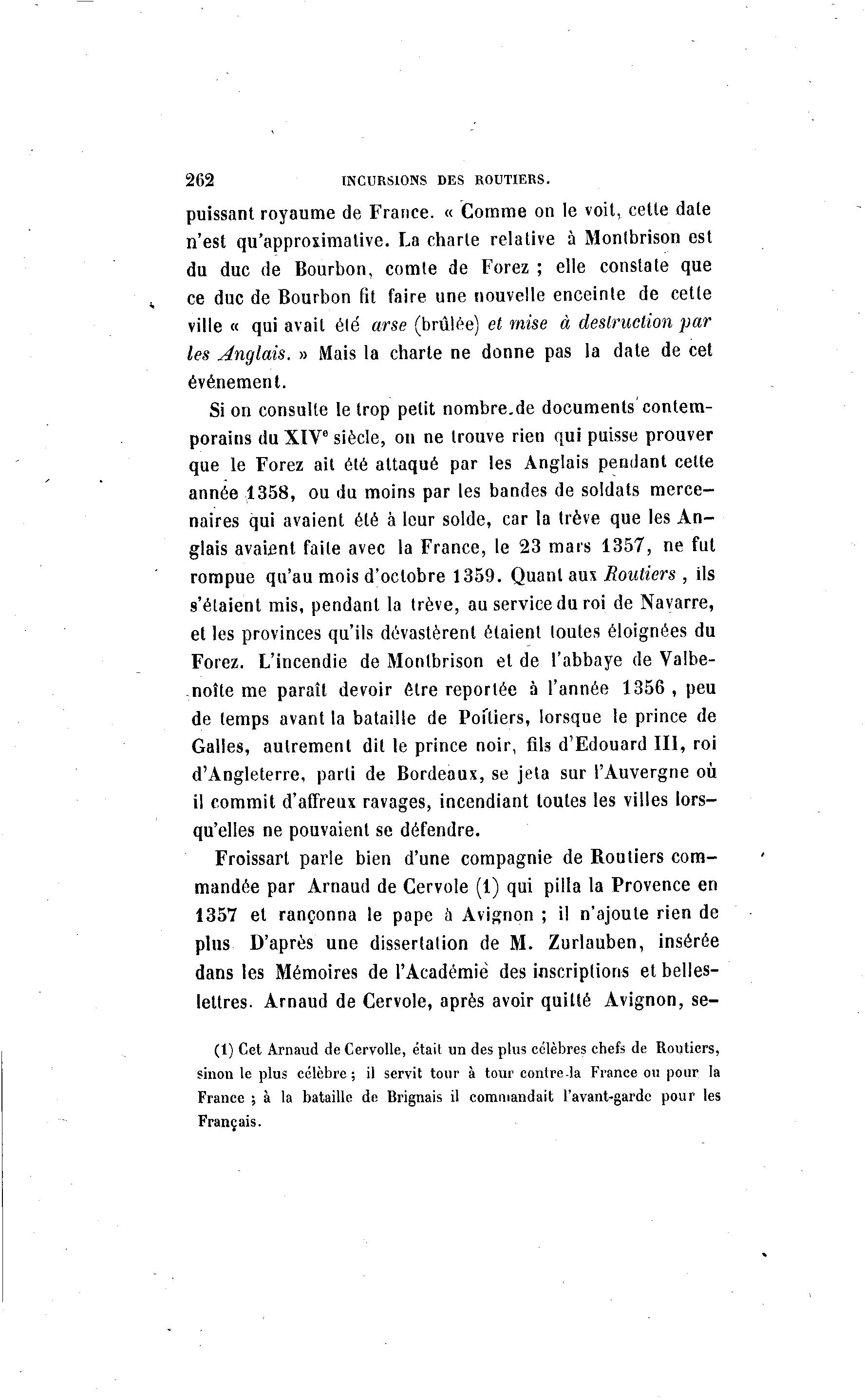(1) Cet Arnaud de Cervolle, étail un des plus célèbres chefs de Routiers,