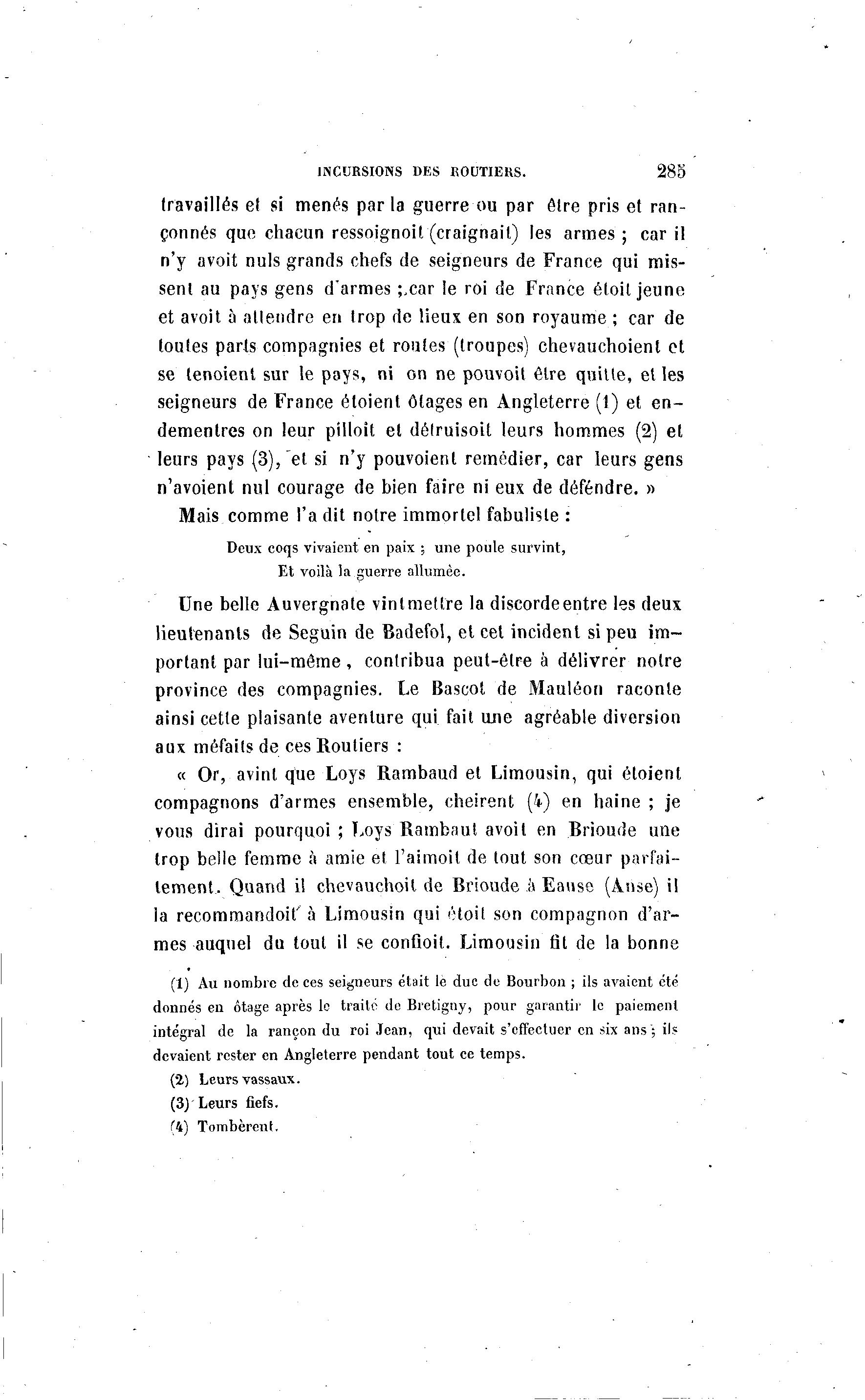 (1) Au nombre de ces seigneurs était le duc de Bourbon ; ils avaient été