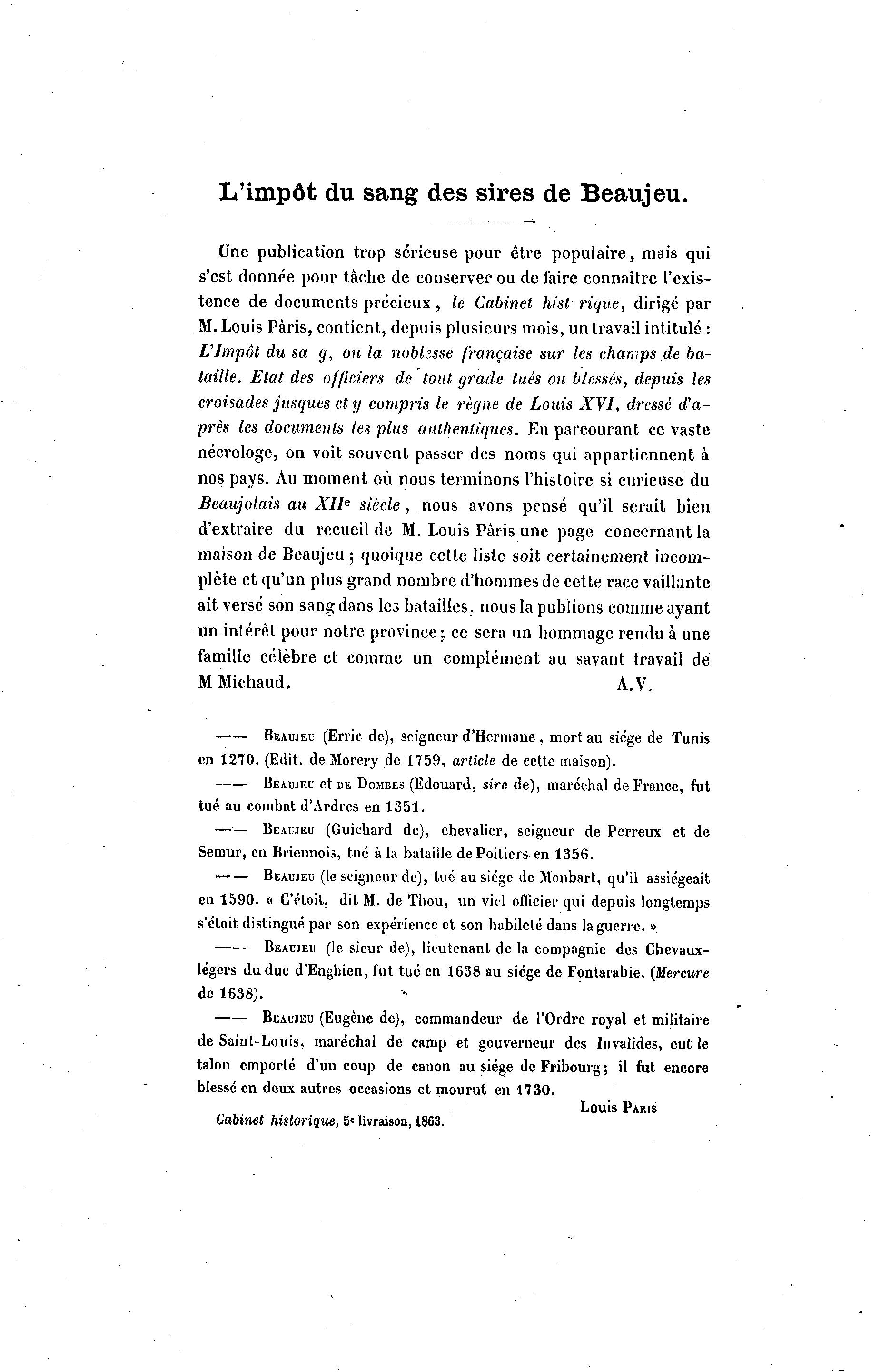 d'extraire du recueil de M. Louis Paris une page concernant la