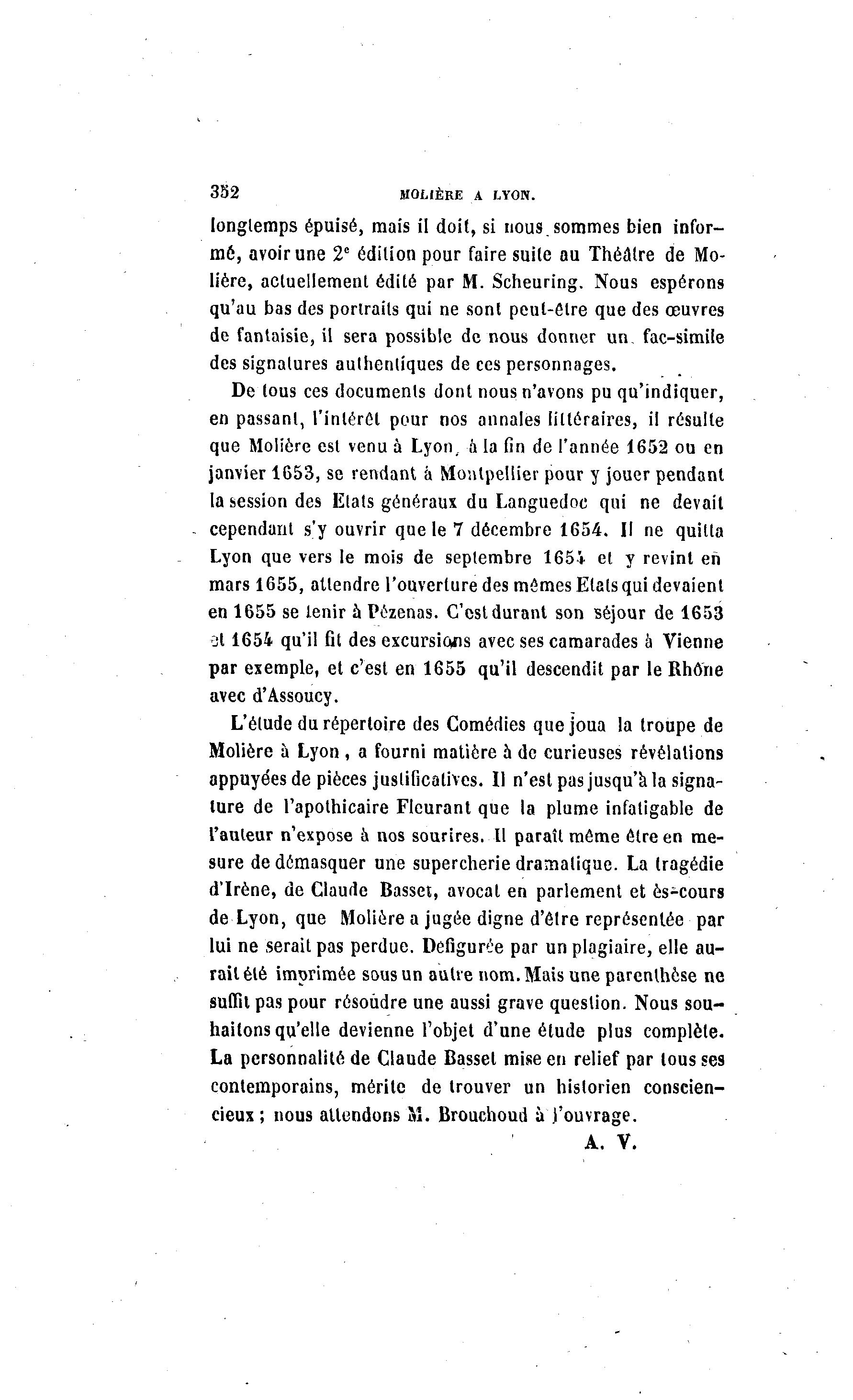 Molière à Lyon , a fourni matière à de curieuses révélations