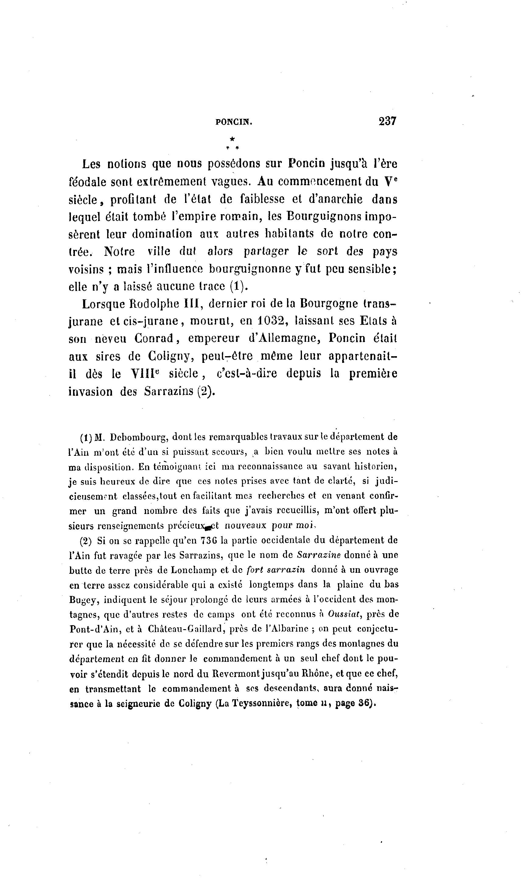 l'Ain fut ravagée par les Sarrazins, que le nom de Sarrazine donné à une
