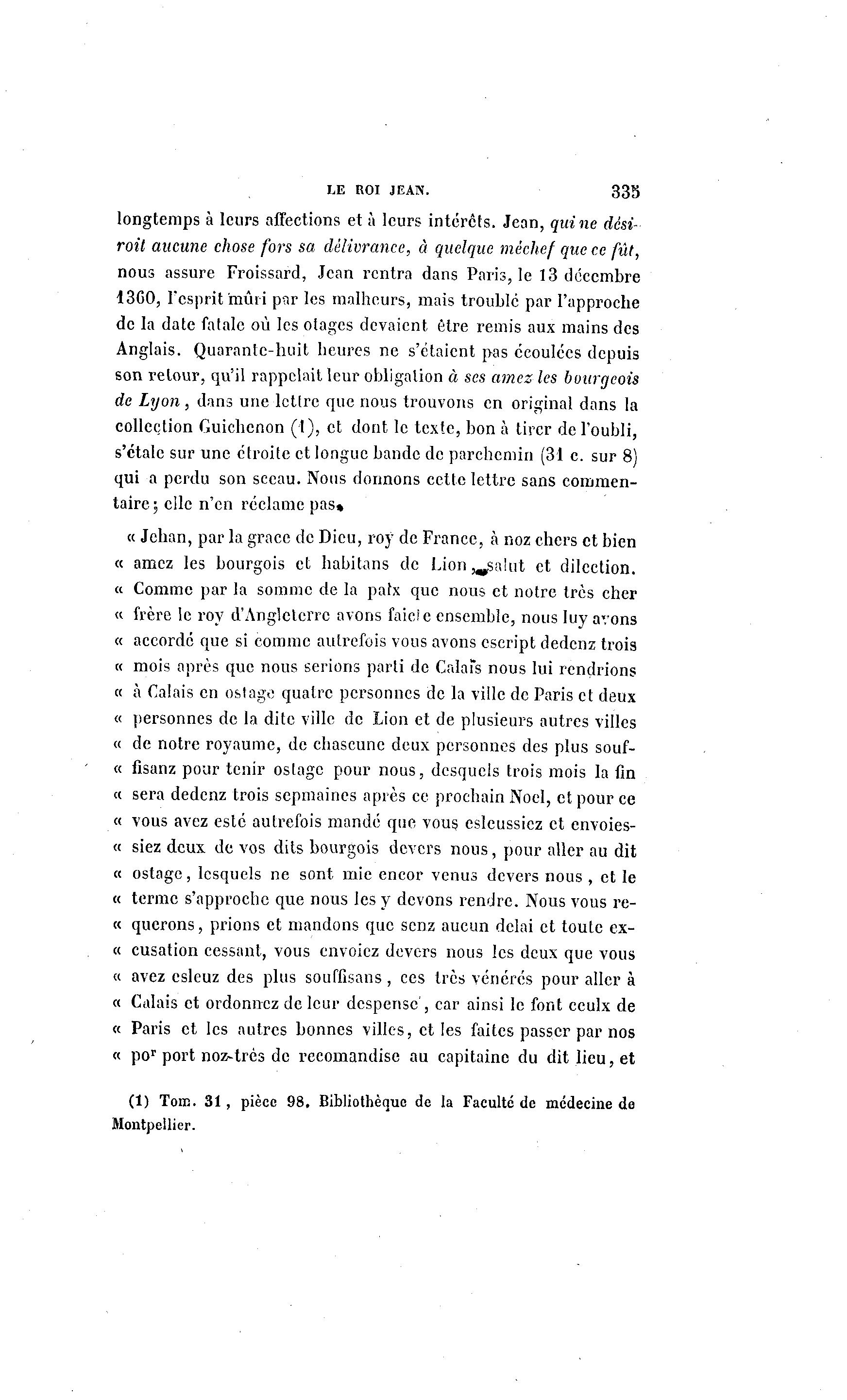 « Jehan, par la grâce de Dieu, roy de France, à noz chers et bien