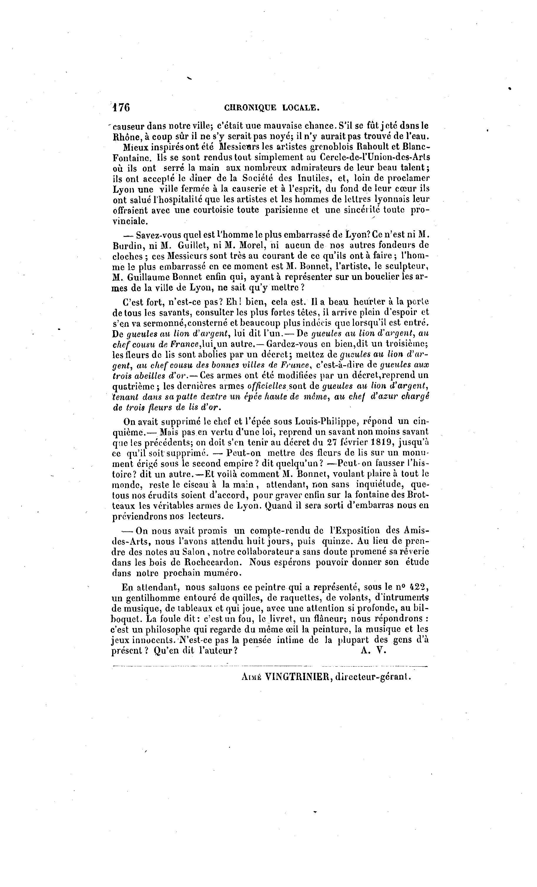 teaux les véritables armes de Lyon. Quand il sera sorti d'embarras nous en