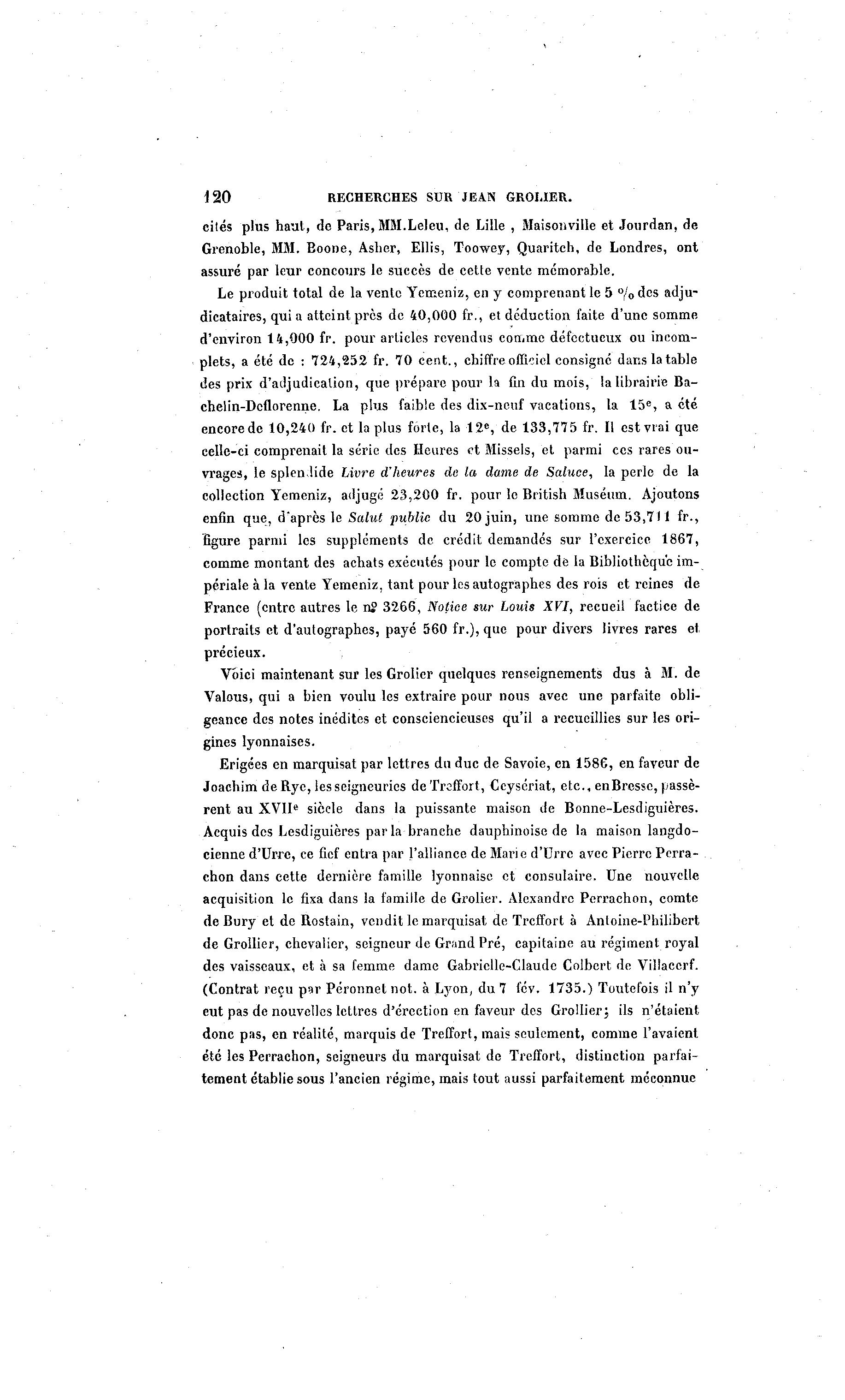 acquisition le fixa dans la famille de Grolier. Alexandre Perrachon, comte