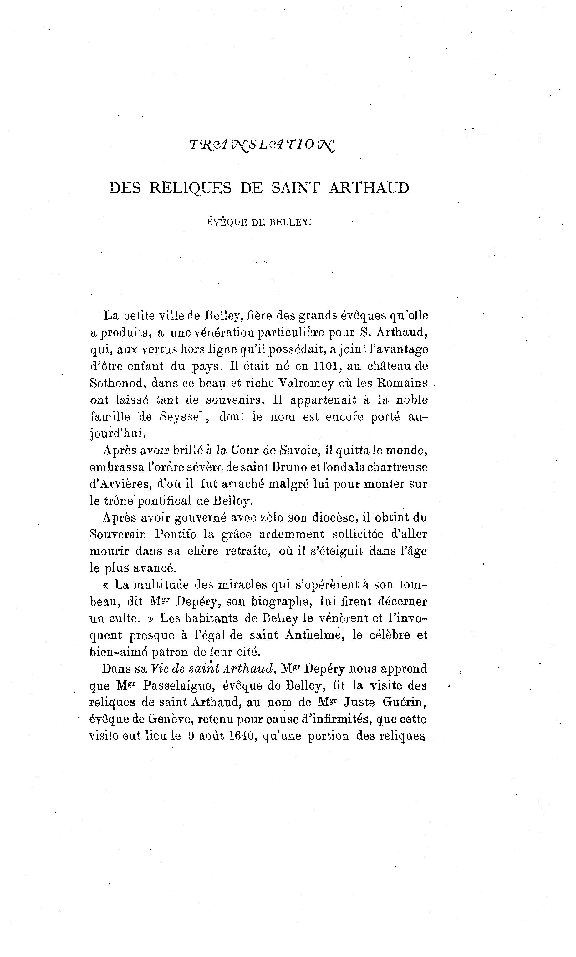 Dans sa Vie de saint Arthaud, M?r Depéry nous apprend