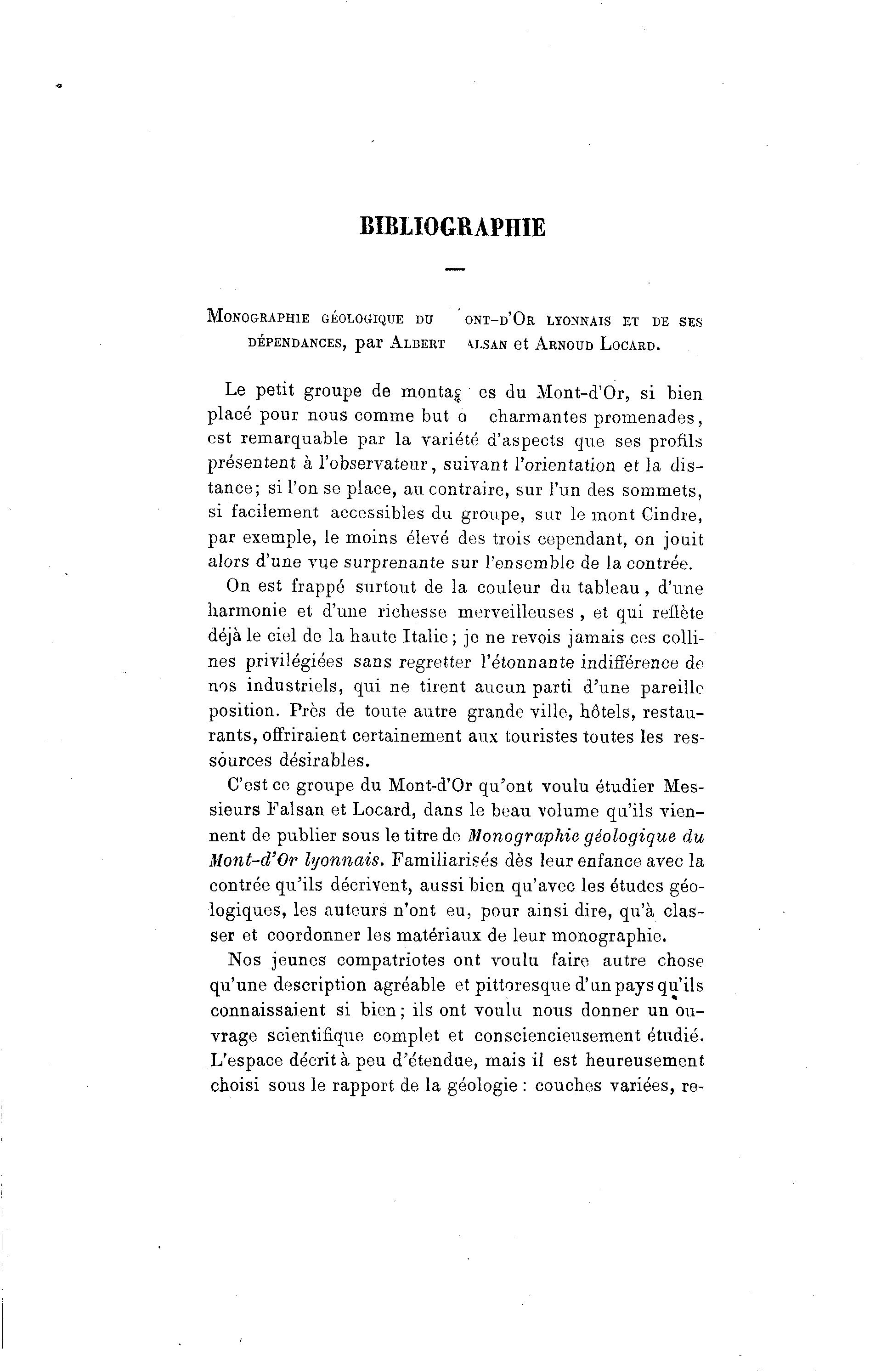 MONOGRAPHIE GÉOLOGIQUE DU ONT-D'OR LYONNAIS ET DE SES