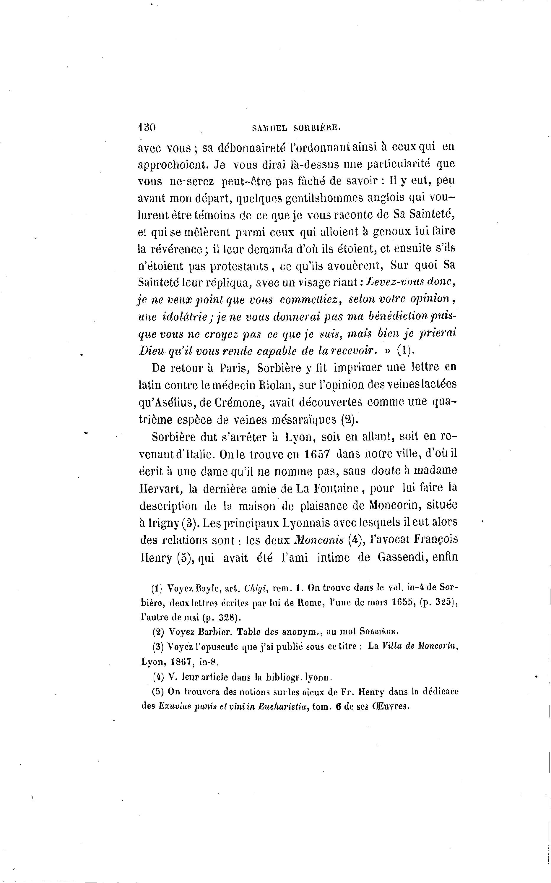 Sorbière dut s'arrêter a Lyon, soit en allant, soit en re-