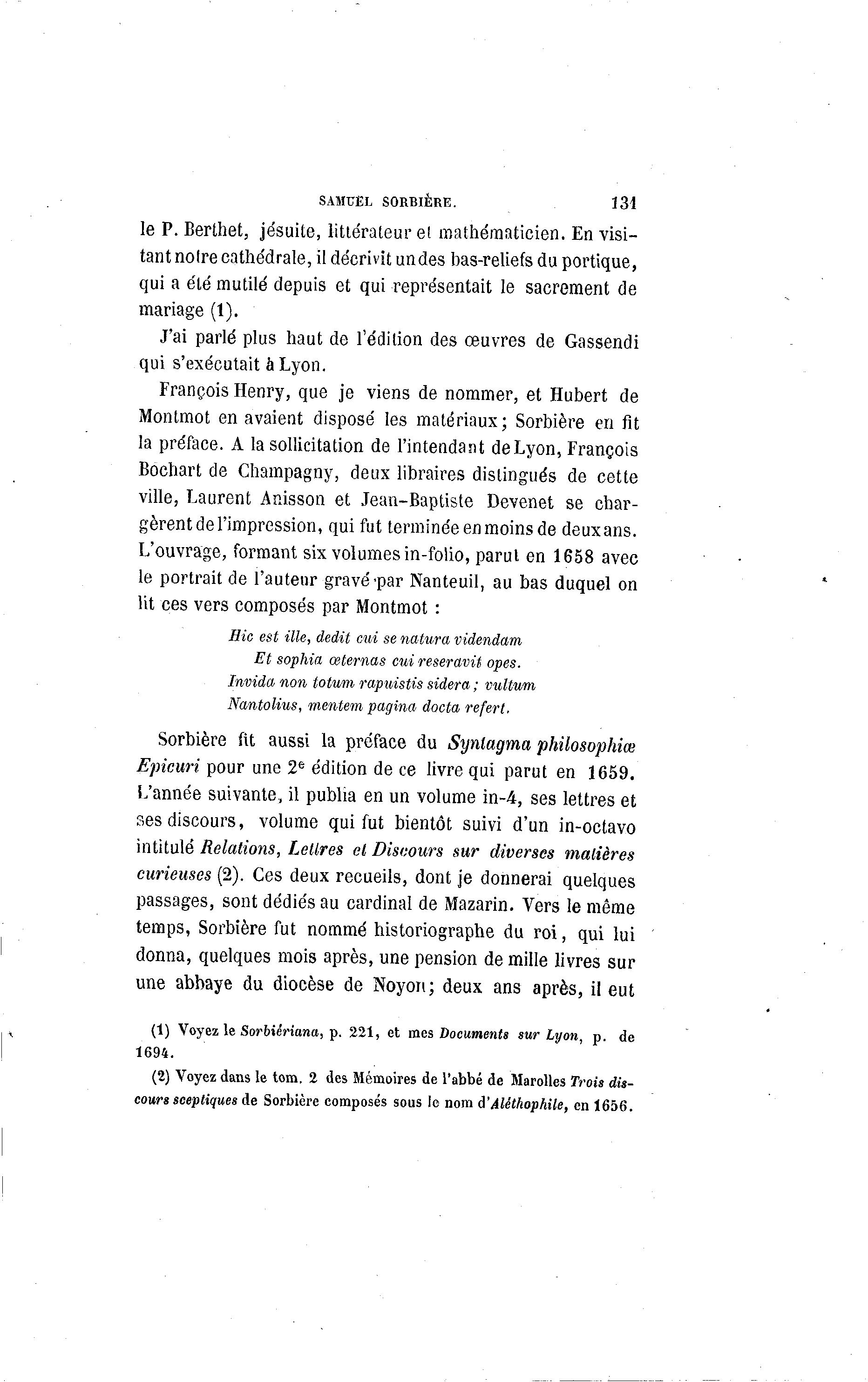 (1) Voyez le Sorbièriana, p. 221, et mes Documents sur Lyon, p. de