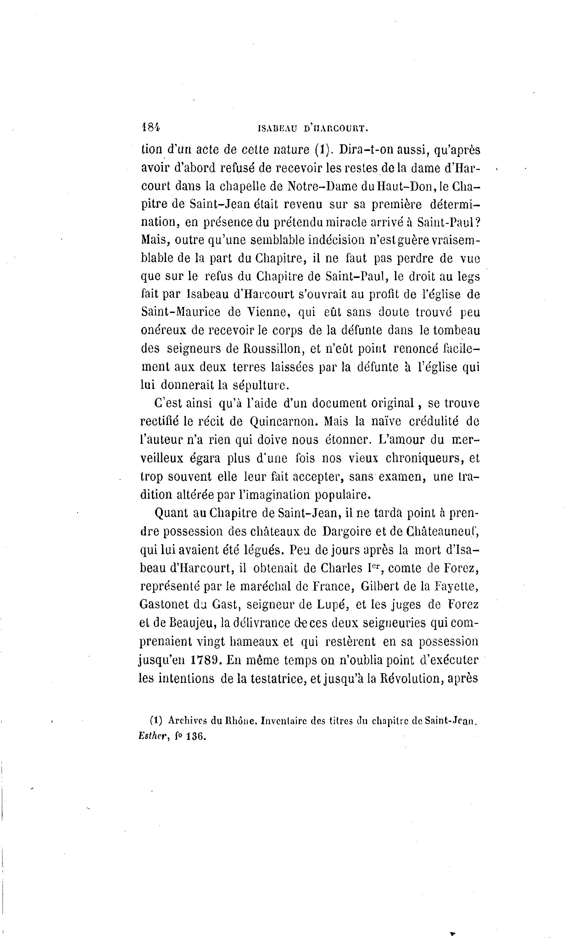 (1) Archive» du Rhône. Inventaire des titres du chapitre de Saint-Jean.