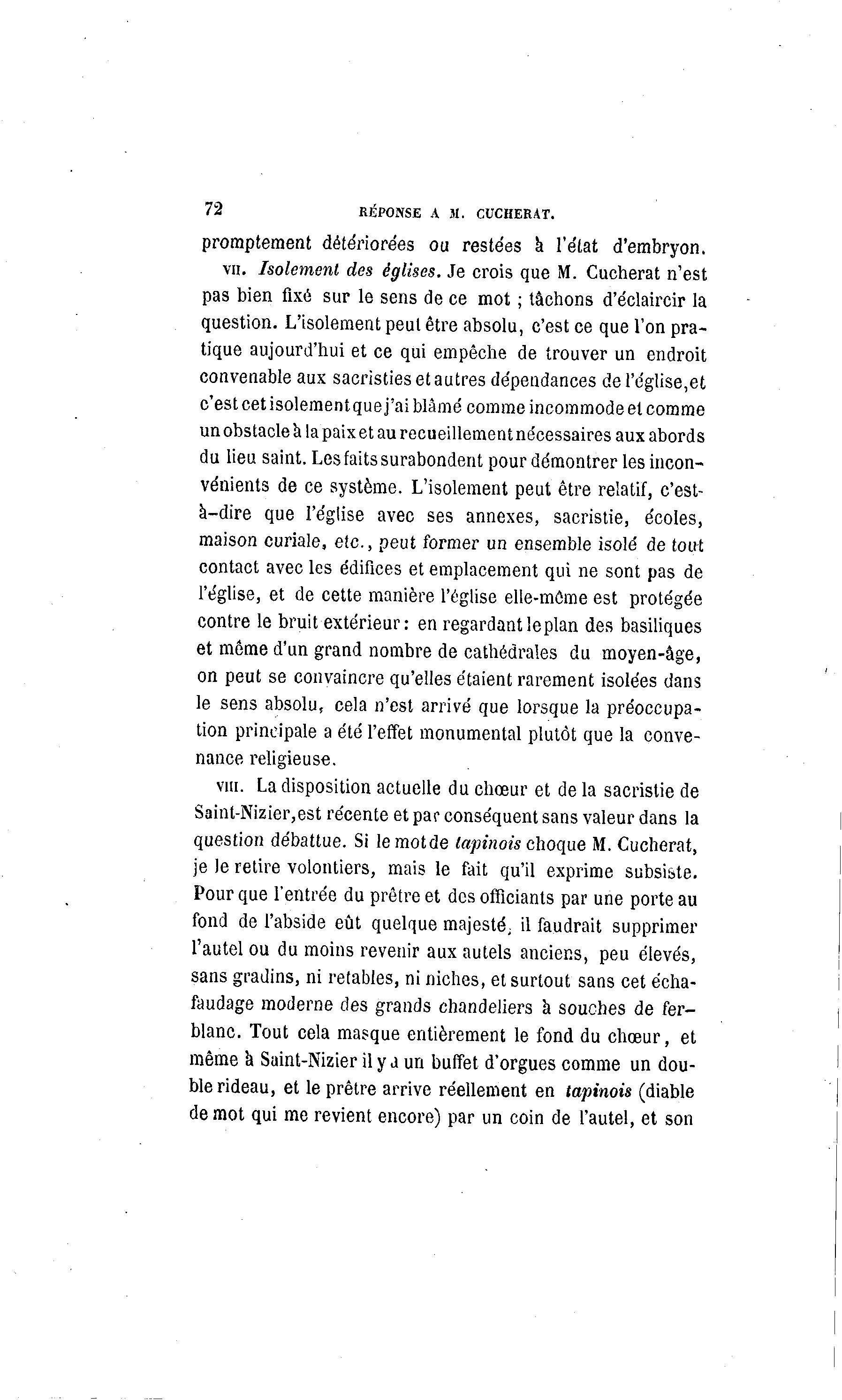 vu. Isolement des églises. Je crois que M. Cucherat n'est