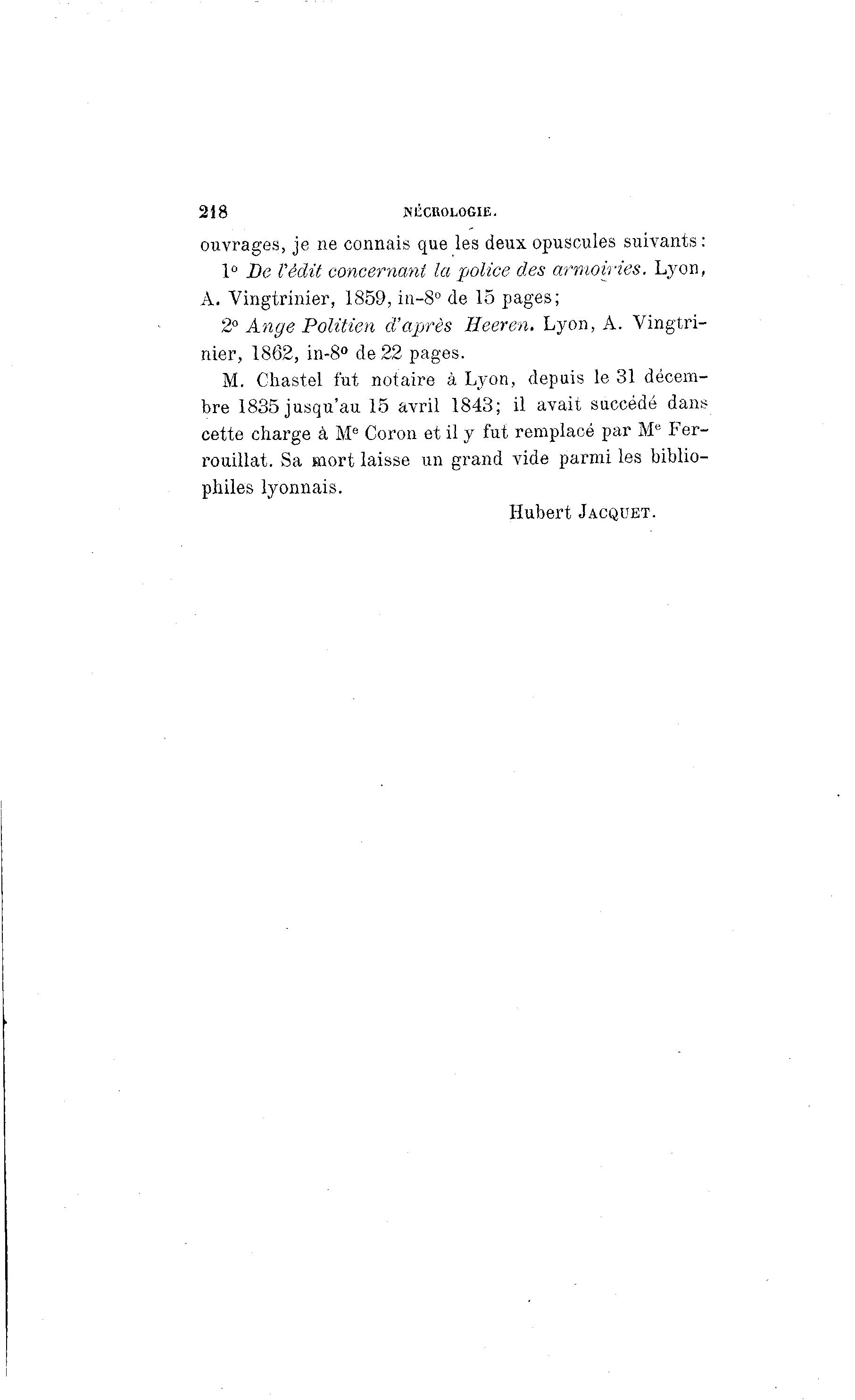 M. Chastel fut notaire à Lyon, depuis le 31 décem-