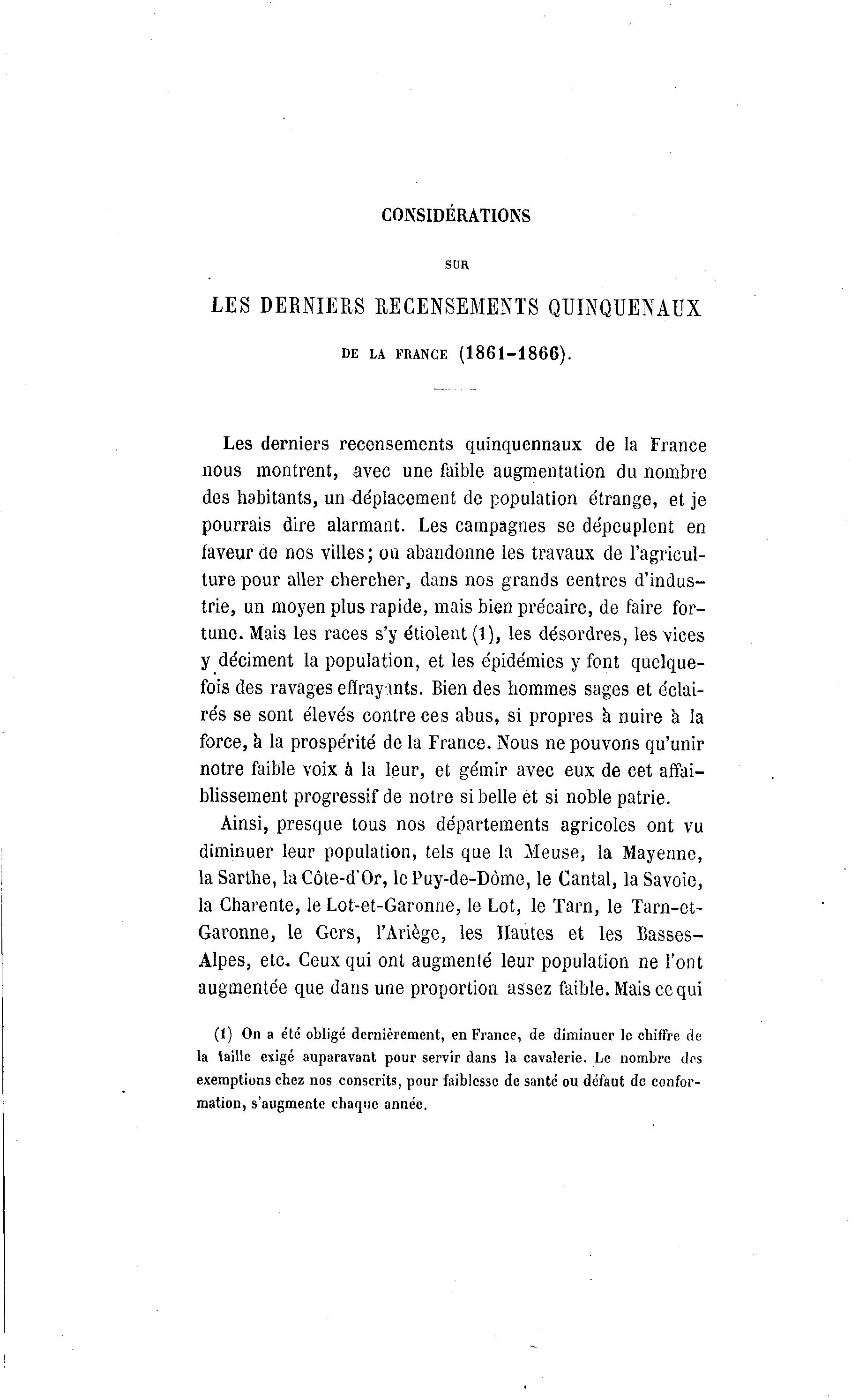 (1) On a été obligé dernièrement, en France, de diminuer le chiffre de