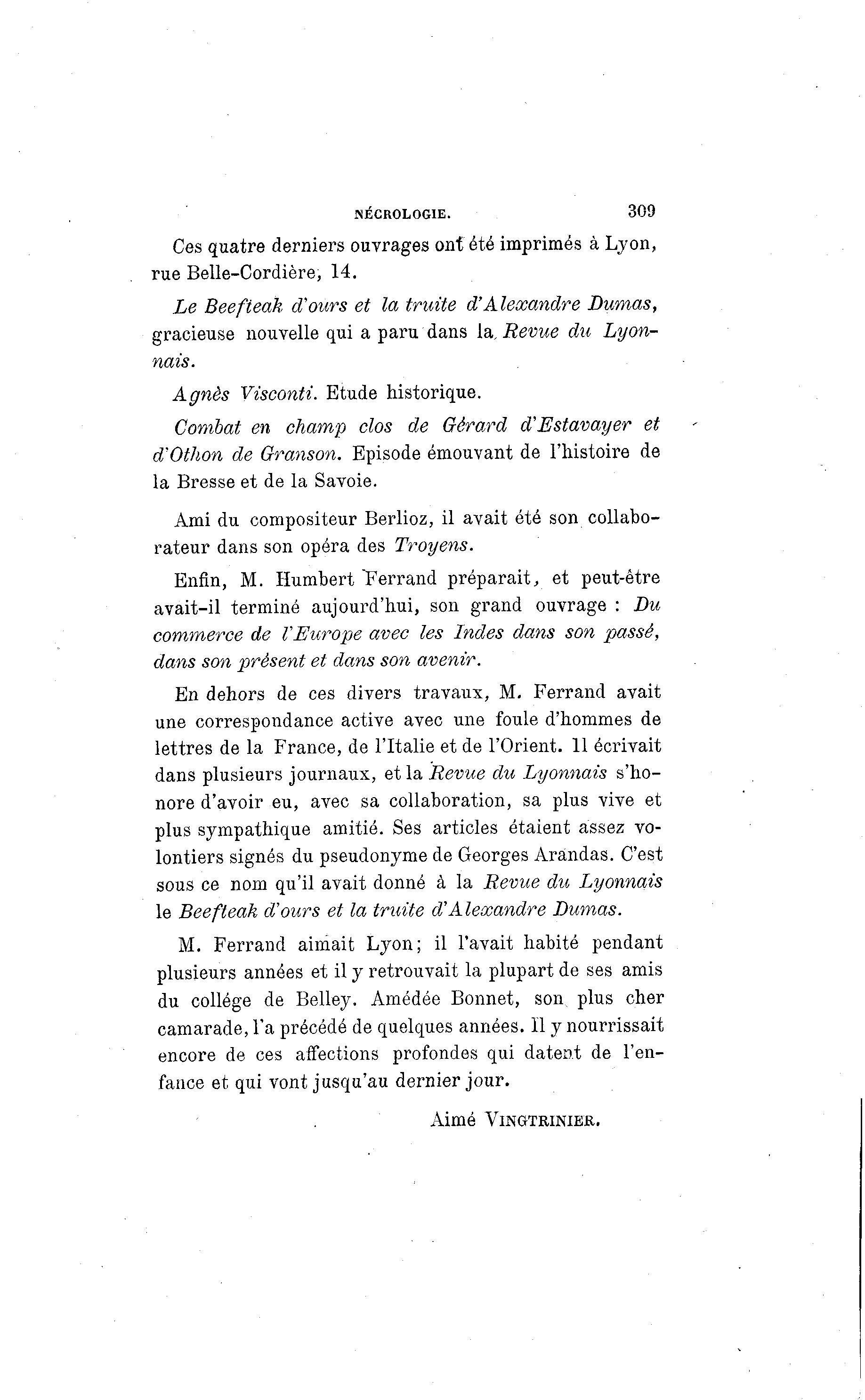 M. Ferrand aimait Lyon; il l'avait habité pendant