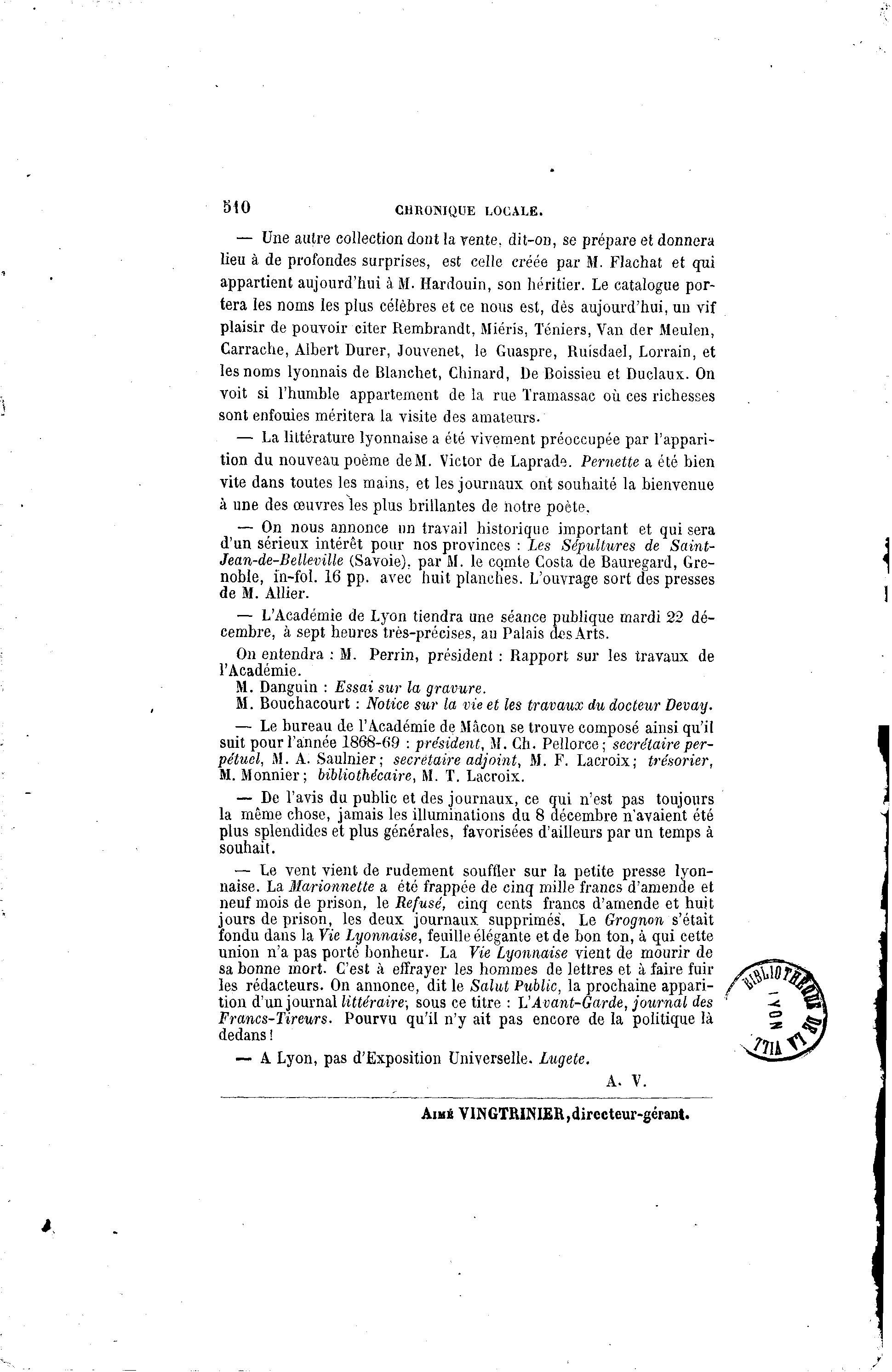 fondu dans la Vie Lyonnaise, feuille élégante et de bon ton, à qui cette
