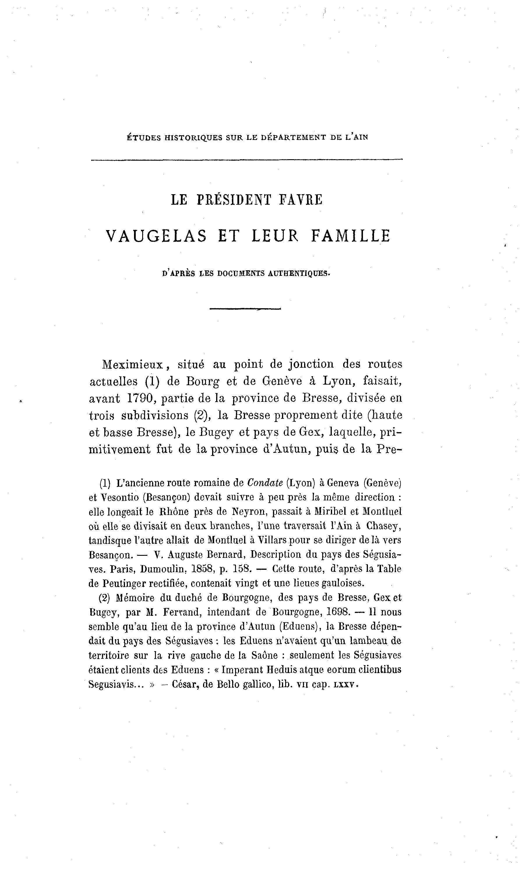 Besançon. — V. Auguste Bernard, Description du pays des Ségusia-