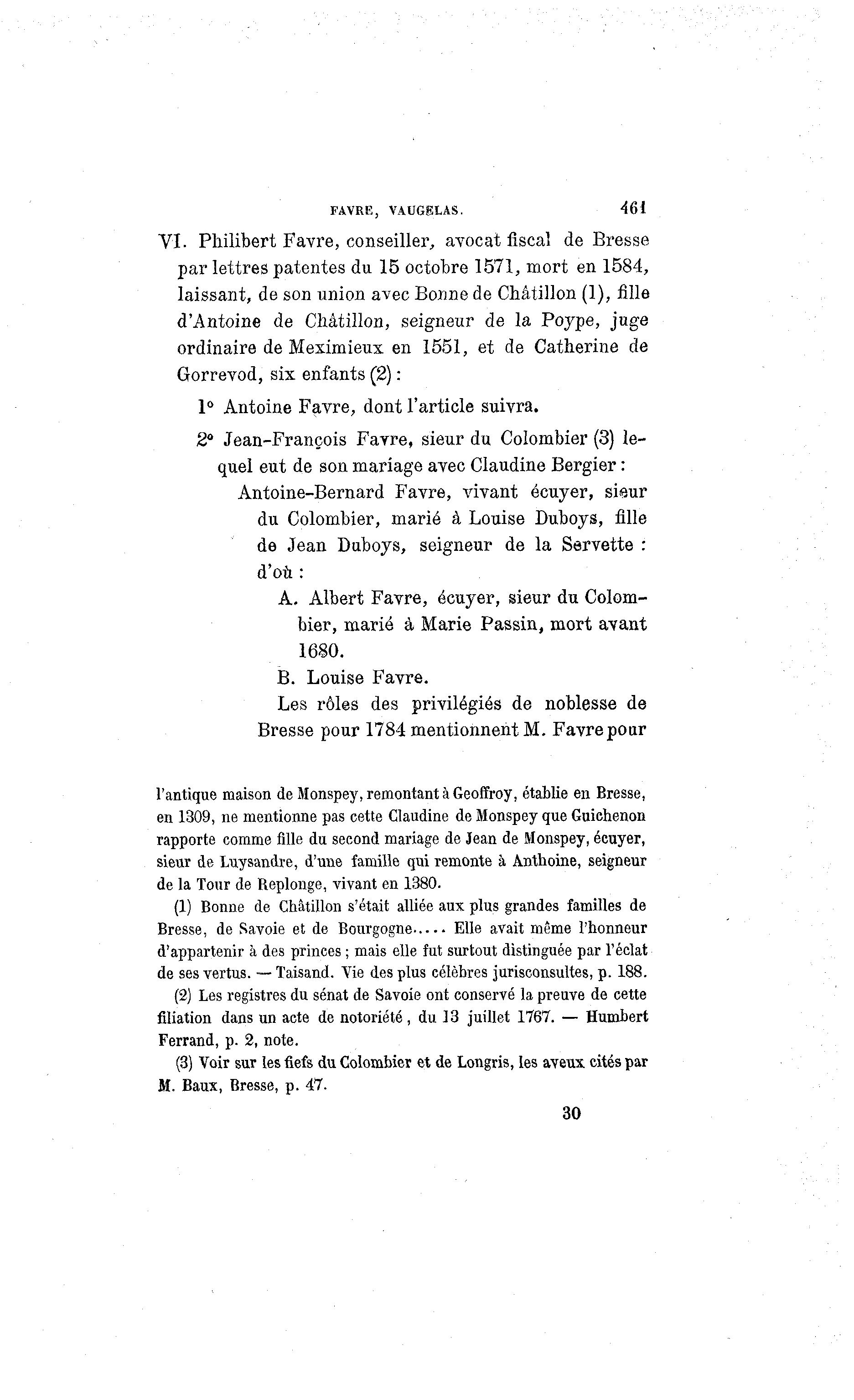 VI. Philibert Favre, conseiller, avocat fiscal de Bresse
